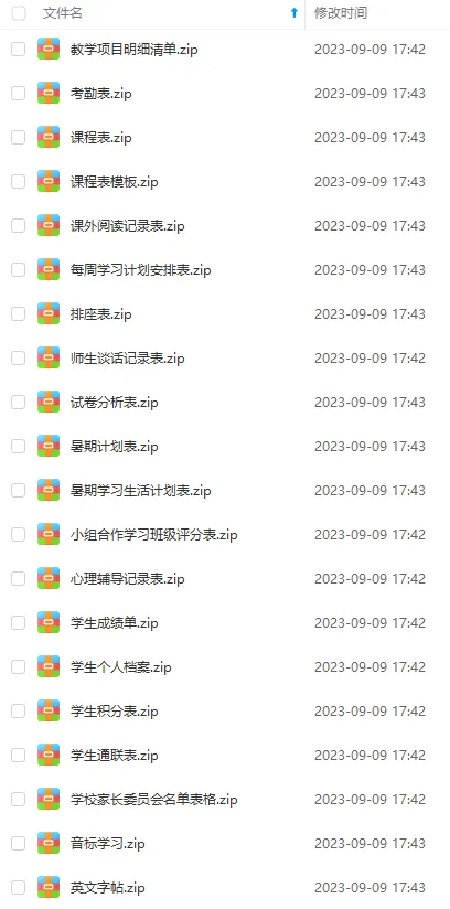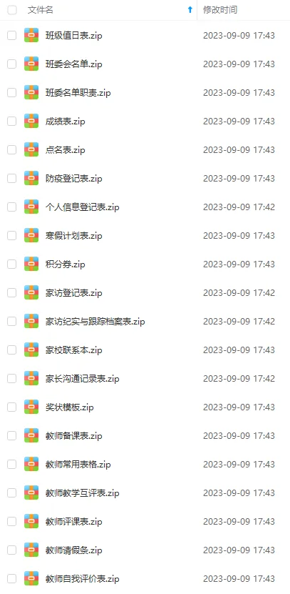 中小学班主任必备表格文档汇总;包含:学生成绩表、学生个人信息登记表、学生花名册、班级积分表、教学计划模板、全学科课程表、班级排座表、班级值日表、班级心理辅导记录表以及班委会名单、作业检查表等等,还有更多内容等待您自行发现,网盘下载链接详见页面底部。
