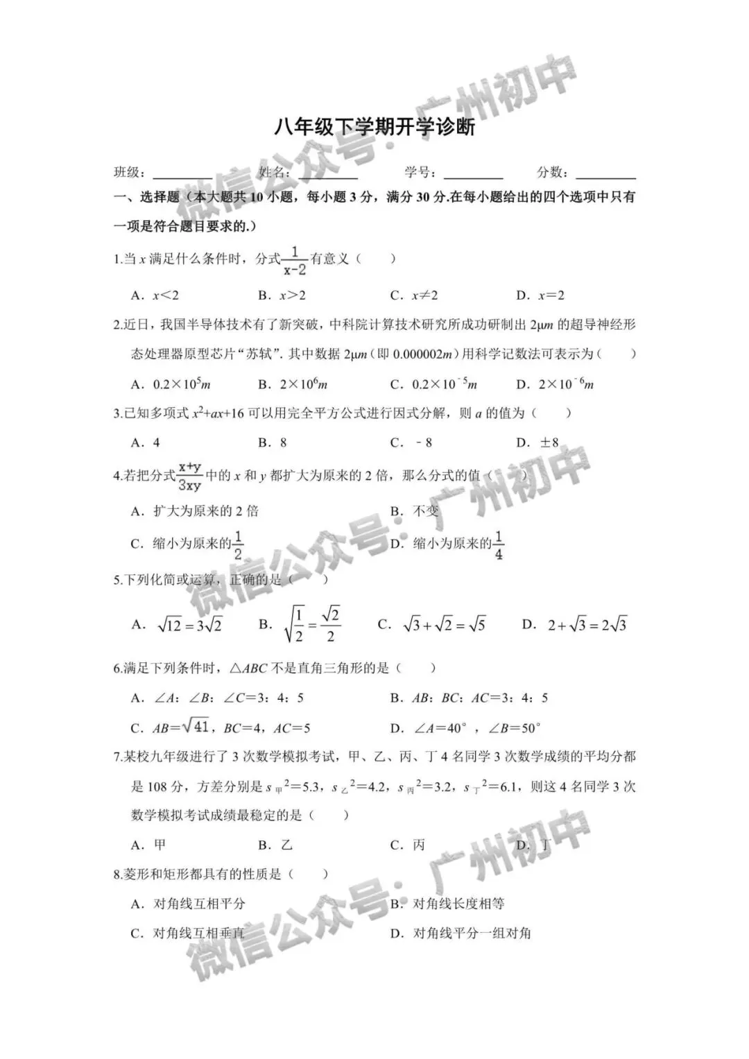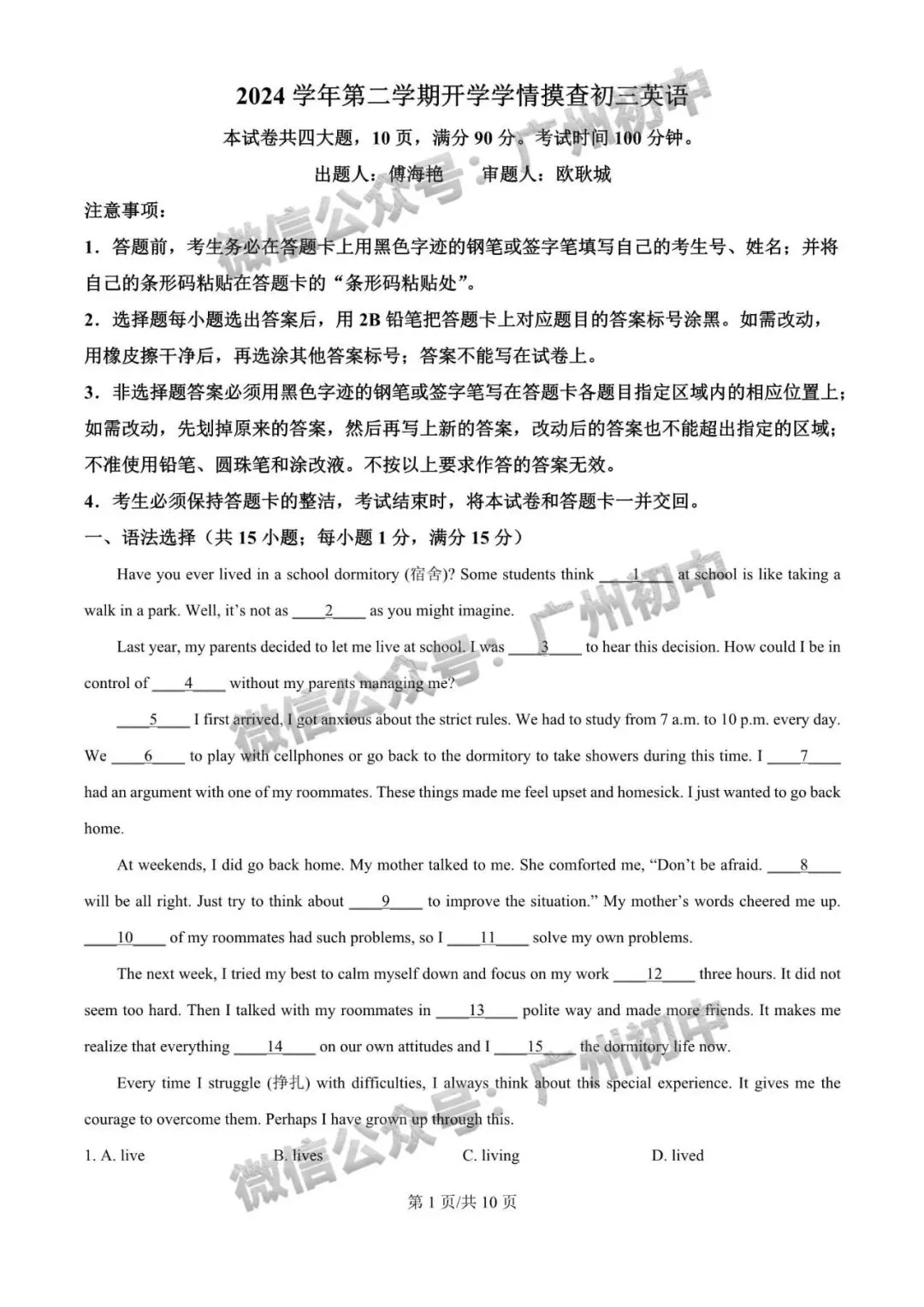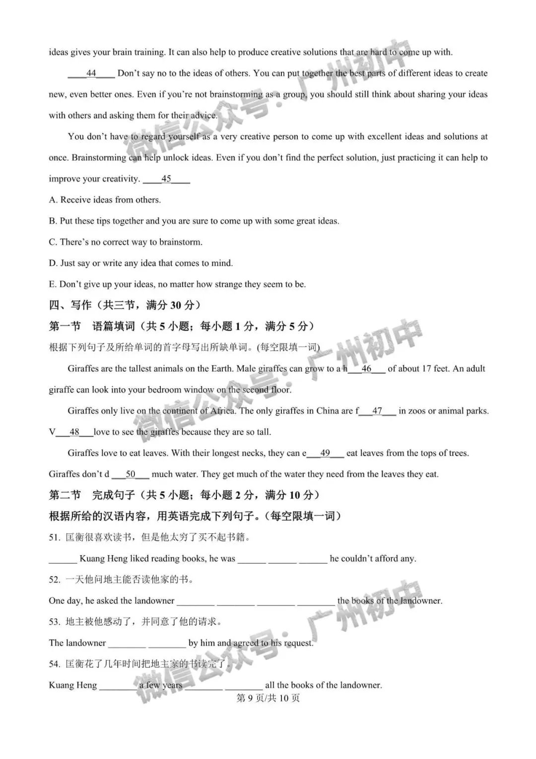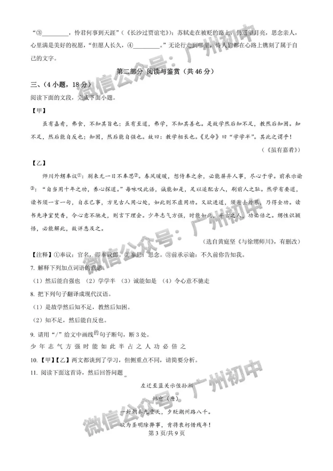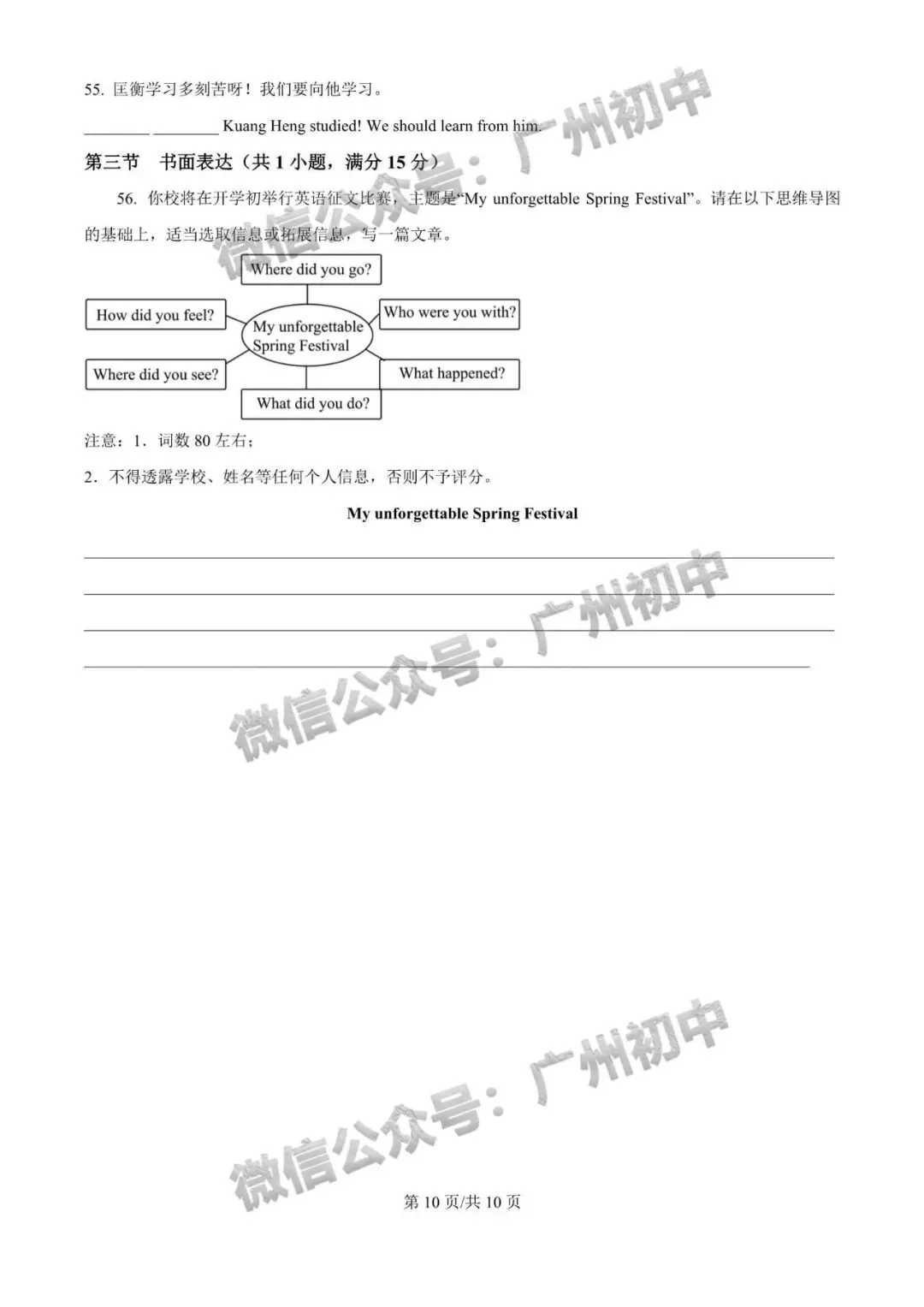 开学考卷子来了!广州初中生、家长速看(附电子版下载)