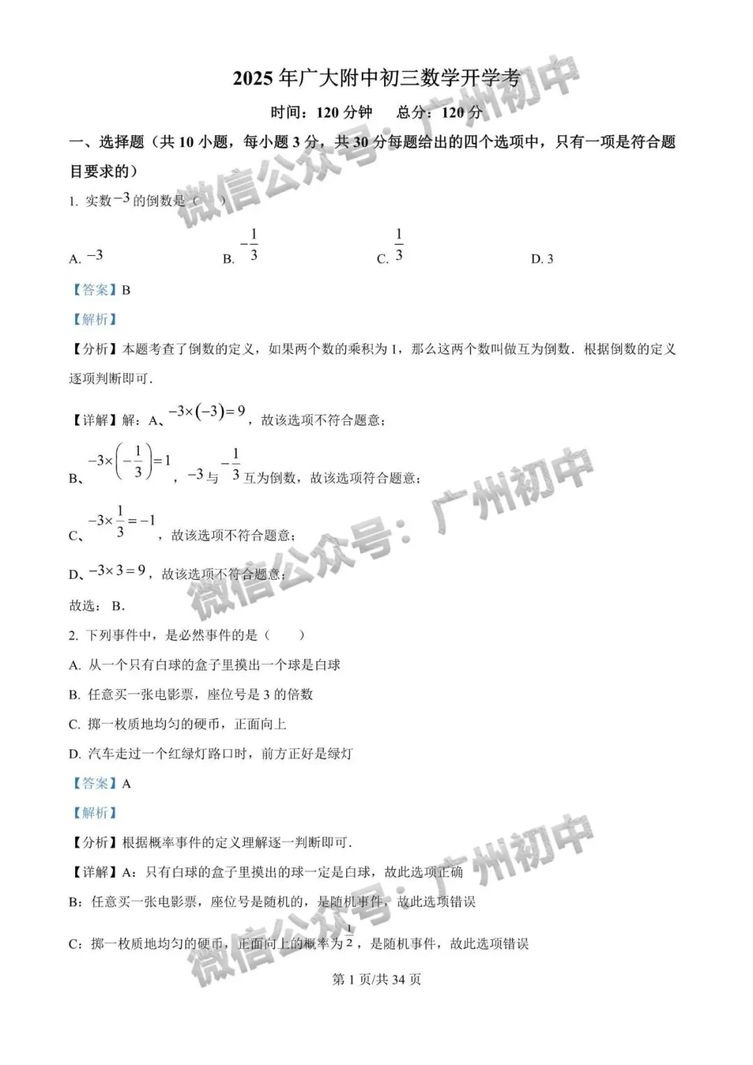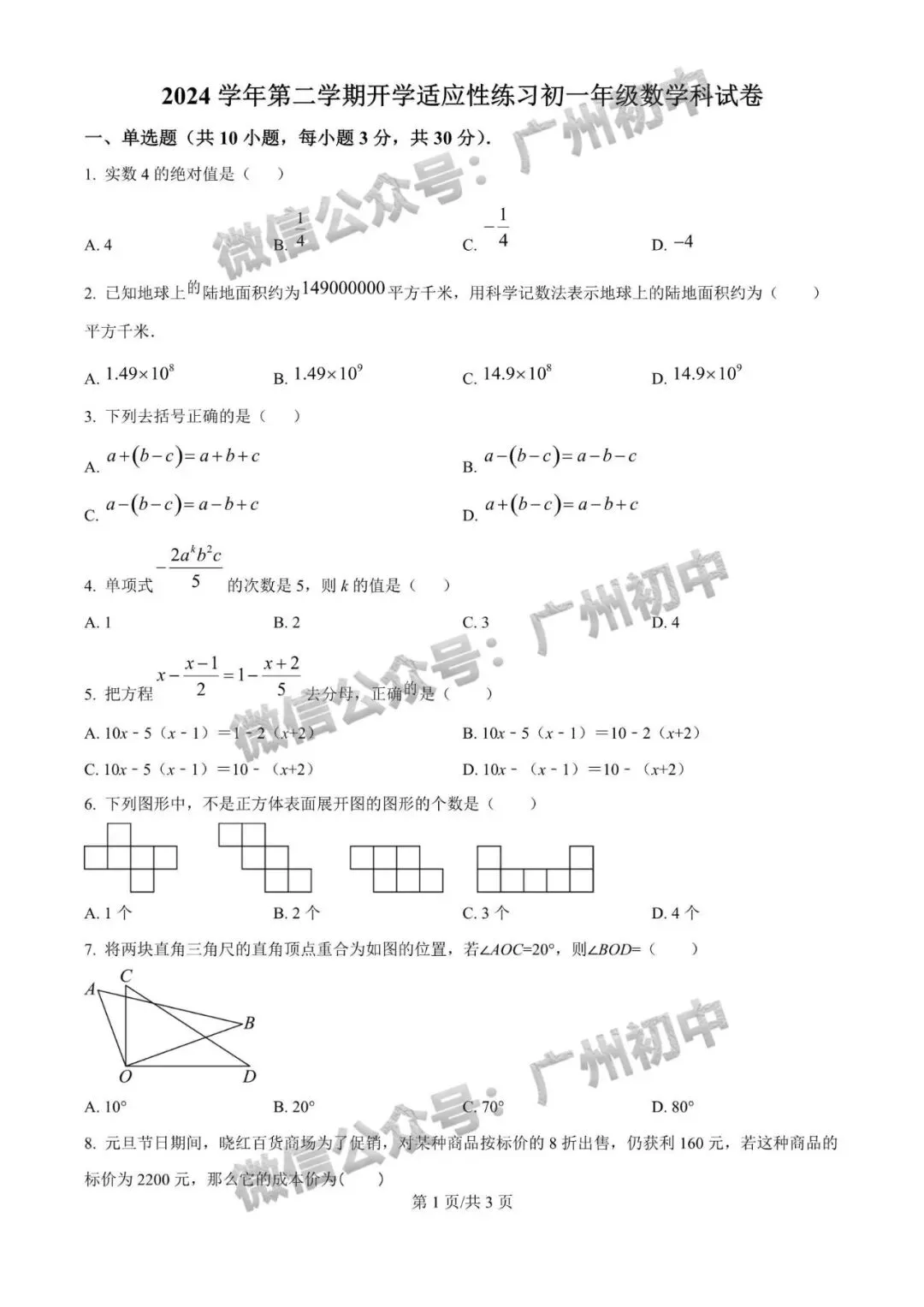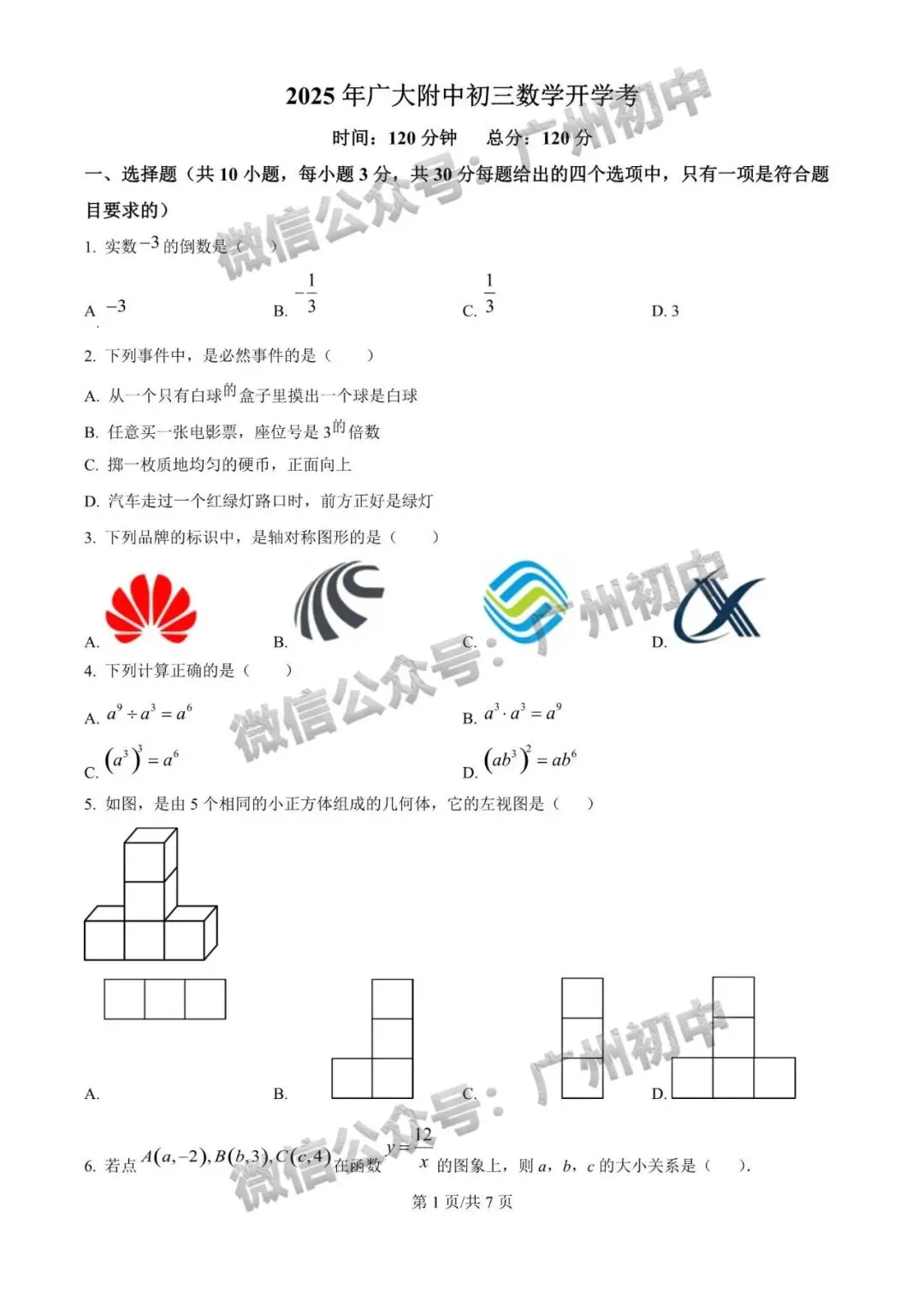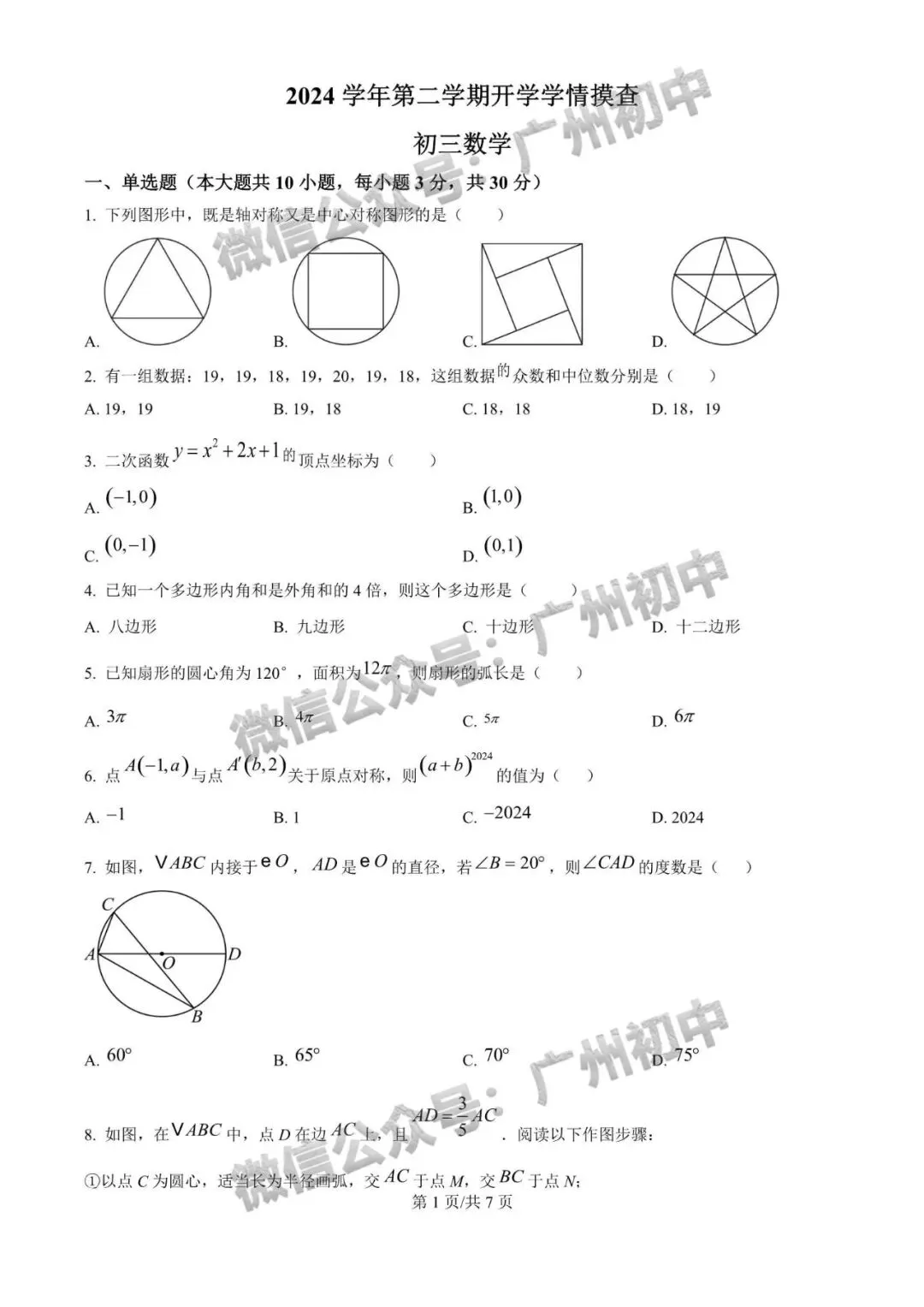 开学考卷子来了!广州初中生、家长速看(附电子版下载)