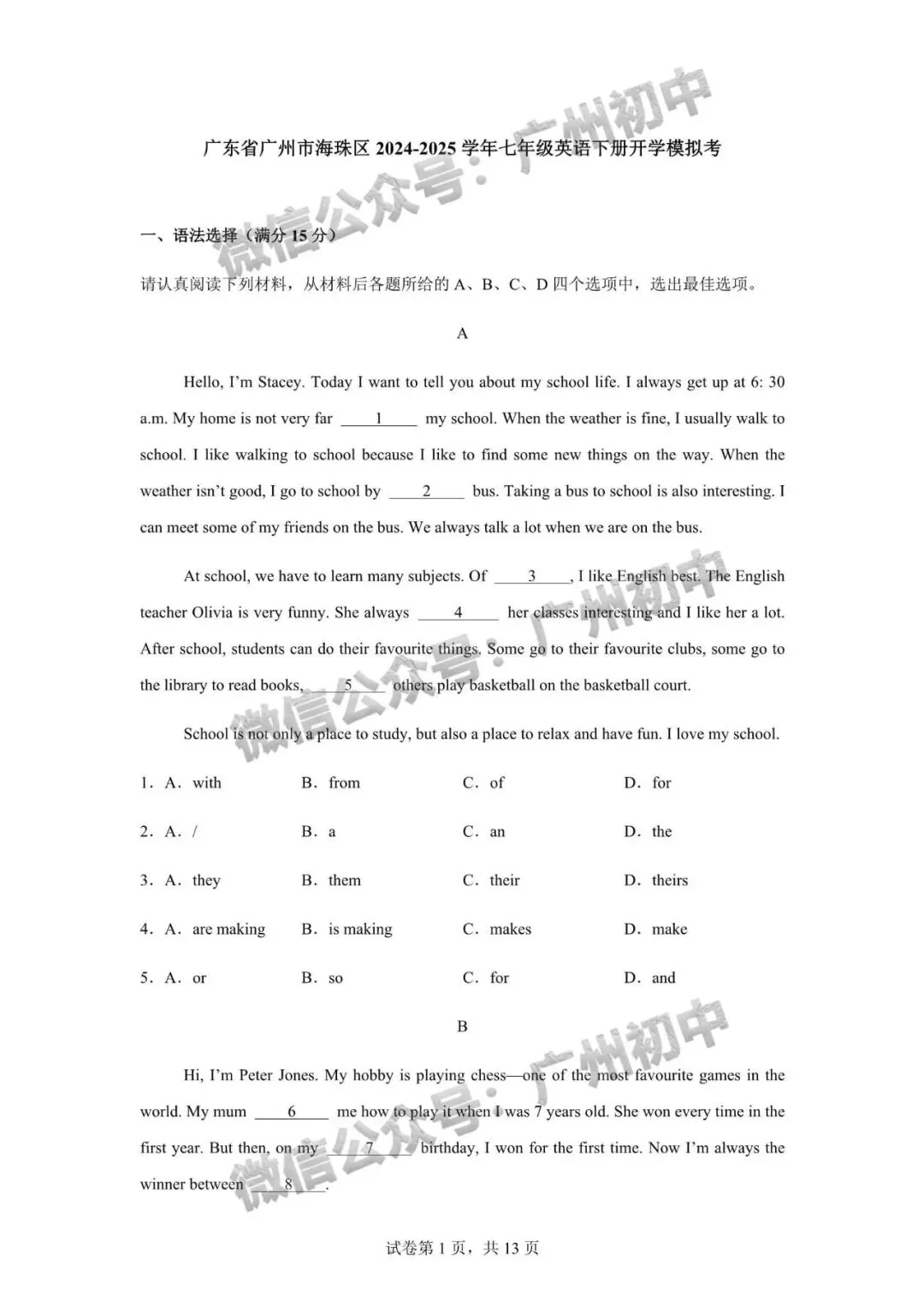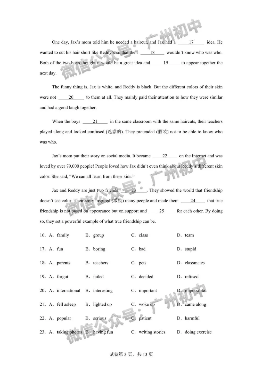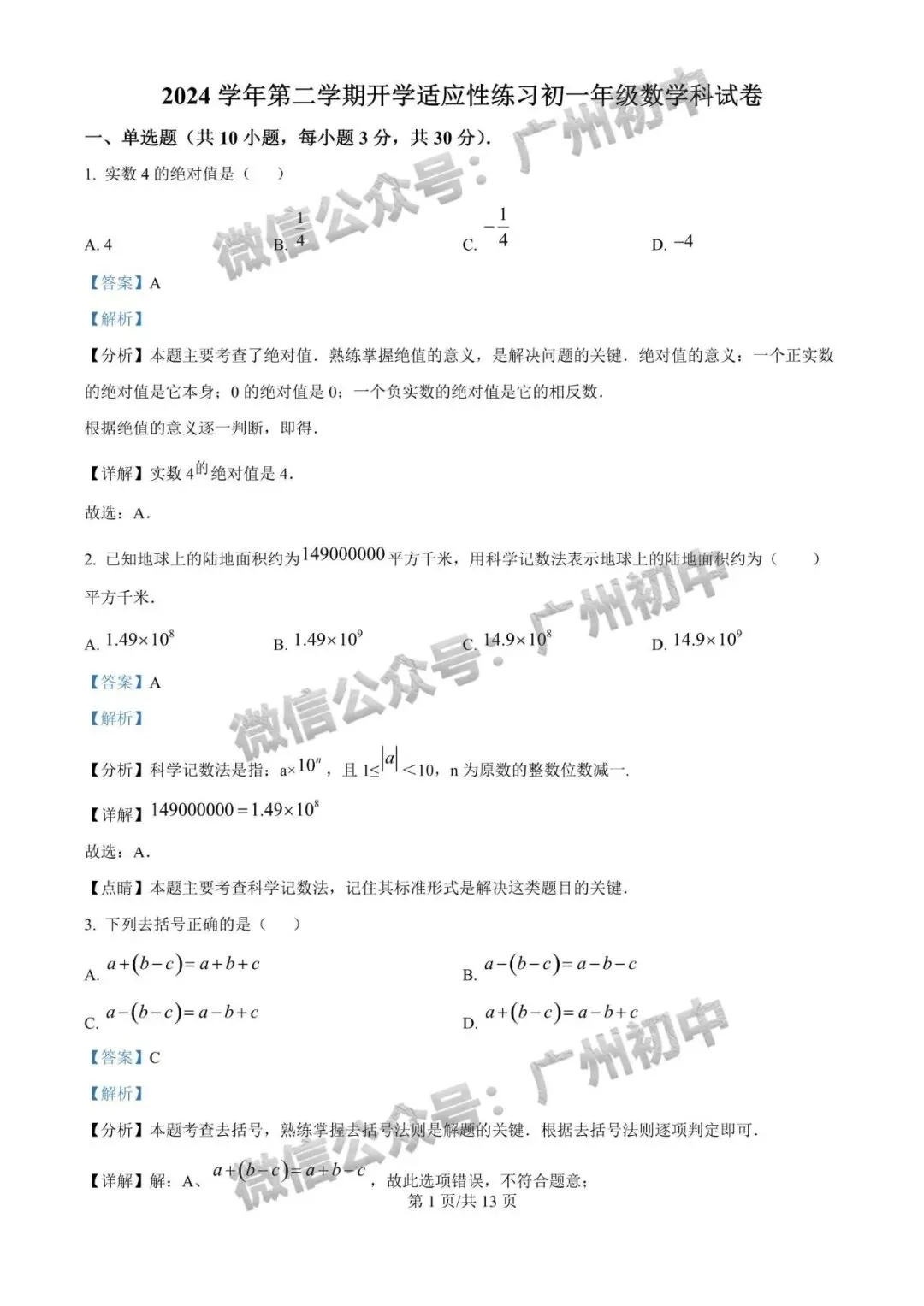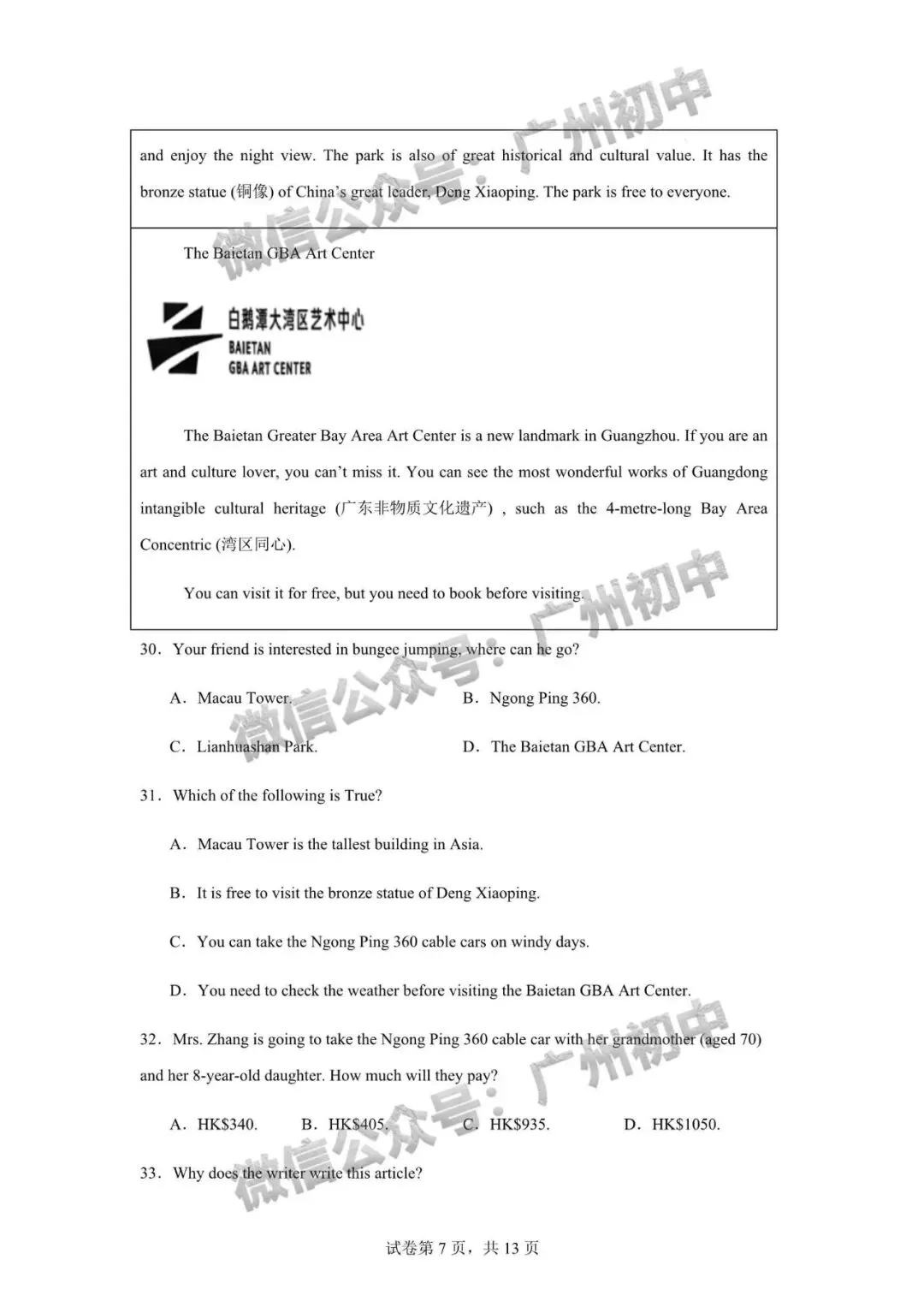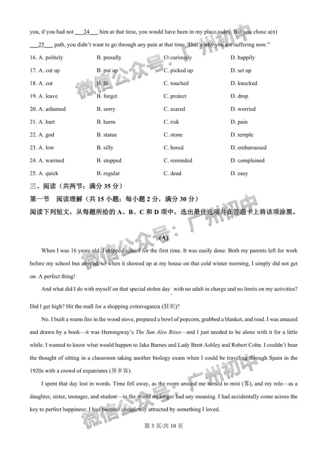 开学考卷子来了!广州初中生、家长速看(附电子版下载)