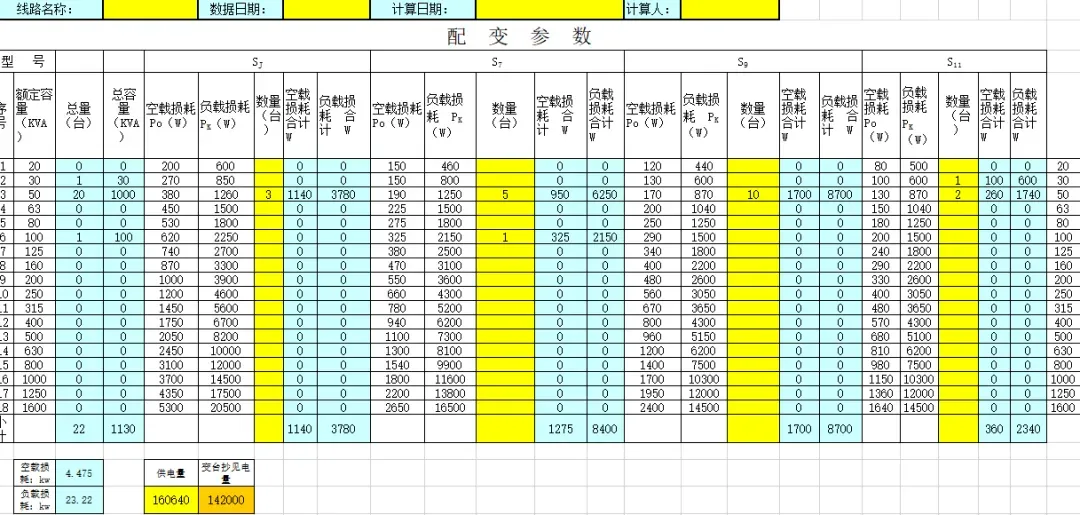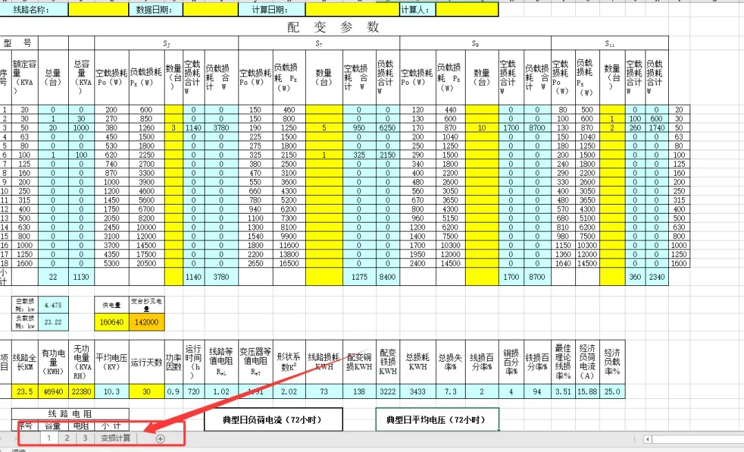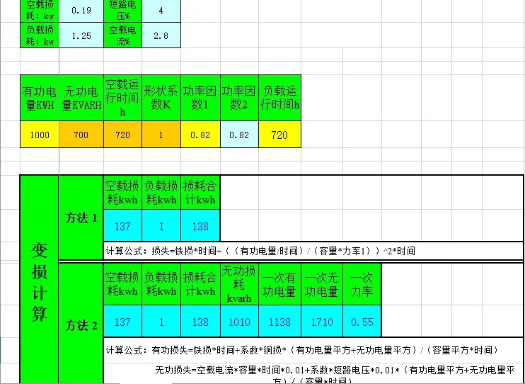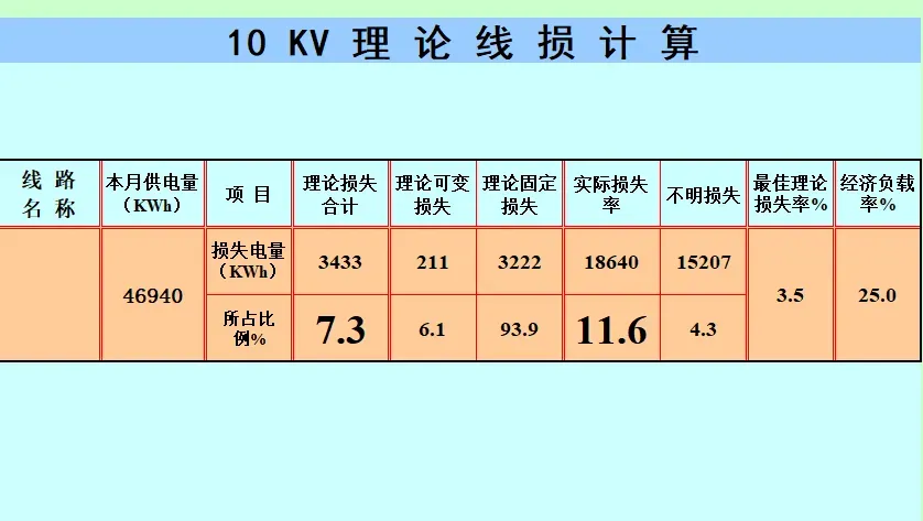 实现:空载损耗 、负载损耗、无功损耗、线路损耗、线路电阻、典型日负荷电流、典型日平均电压等10kV供电线路相关常用计算公式