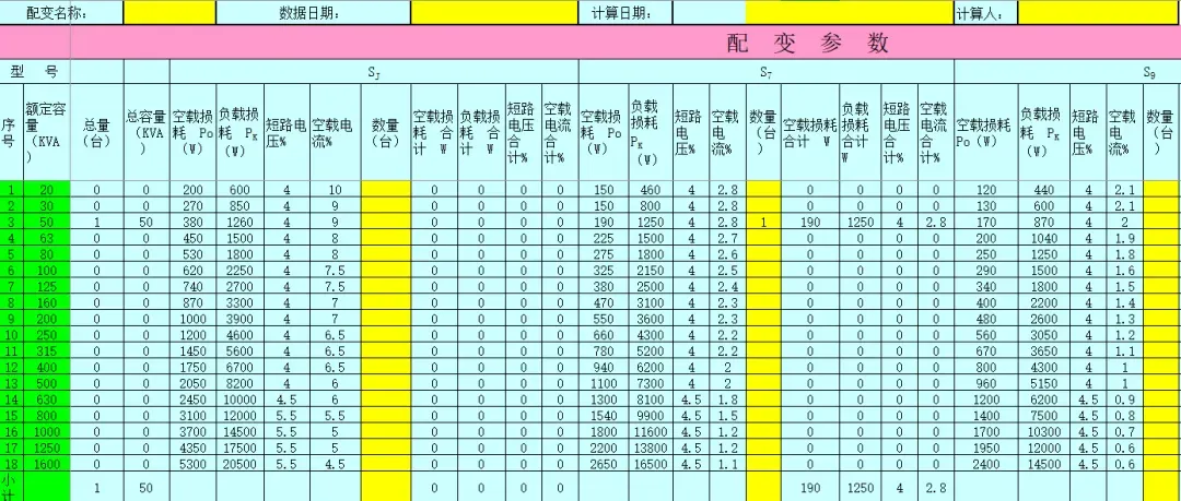 10kV供电线路相关计算书(线损、变损、变配参数)