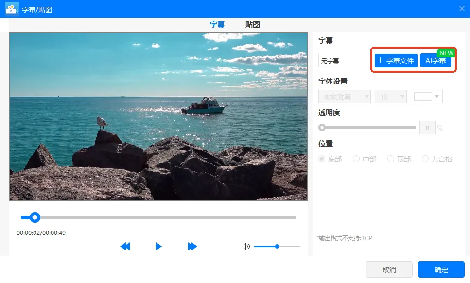 软件提供了可视化的字幕编辑界面,用户可以直接在视频预览窗口中调整字幕位置。