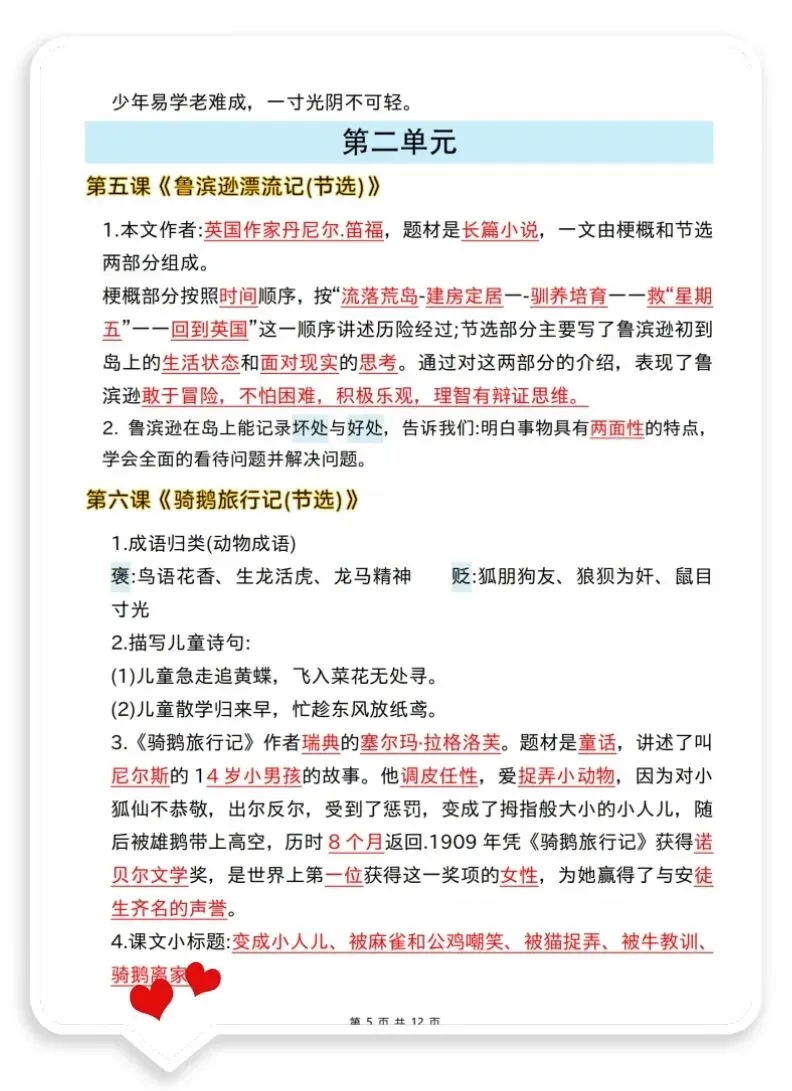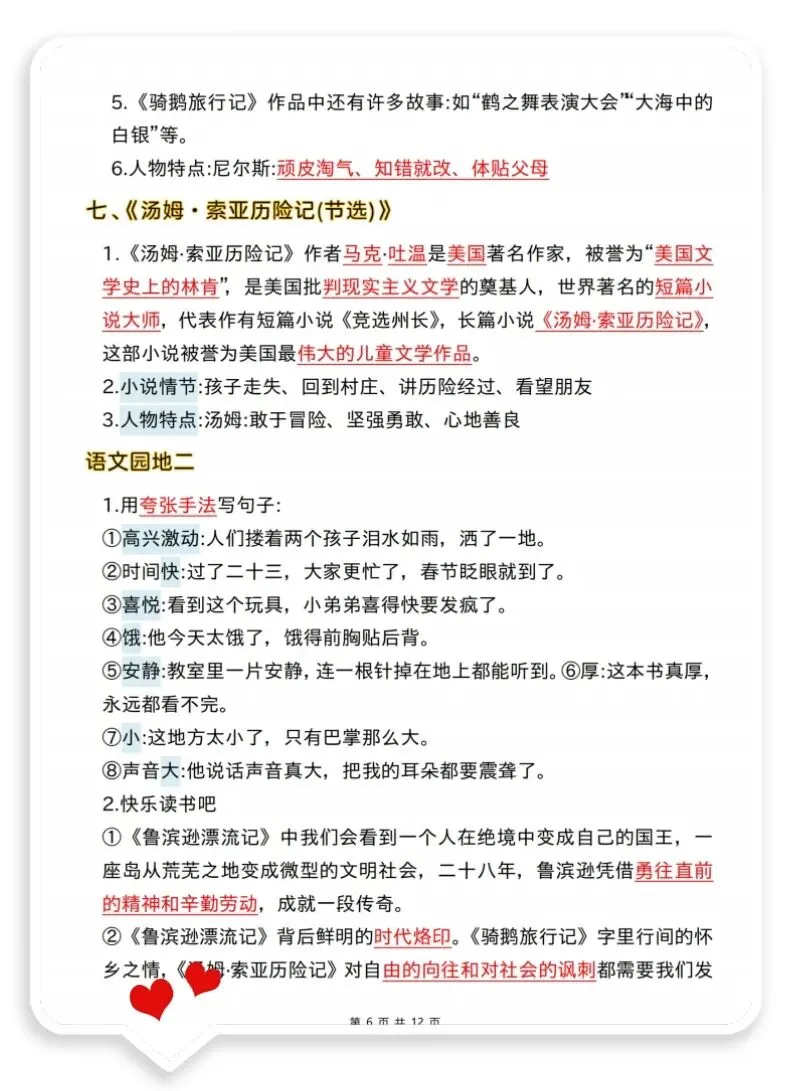26春六年级下册语文《全册核心考点》 电子版可下载打印