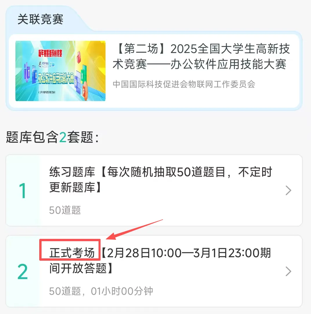2、选择竞赛“【第二场】2025全国大学生高新技术竞赛—办公软件应用技能大赛”