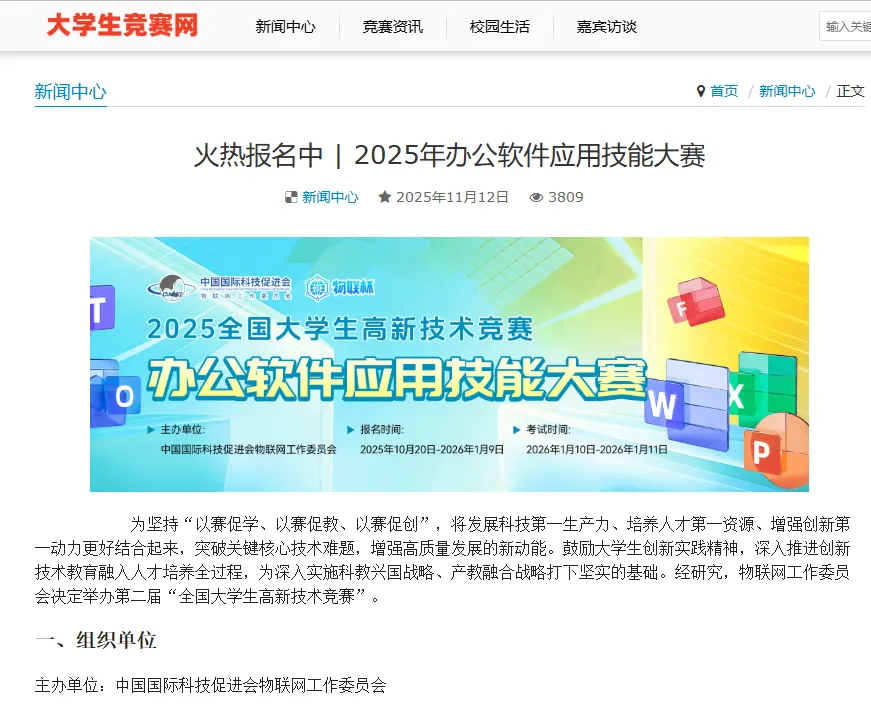 由中国国际科技促进会物联网工作委员会(国家一级社团)主办的最后一场办公软件应用技能大赛正在火热报名中!长按识别下方二维码进入官网查看竞赛详情并报名!
