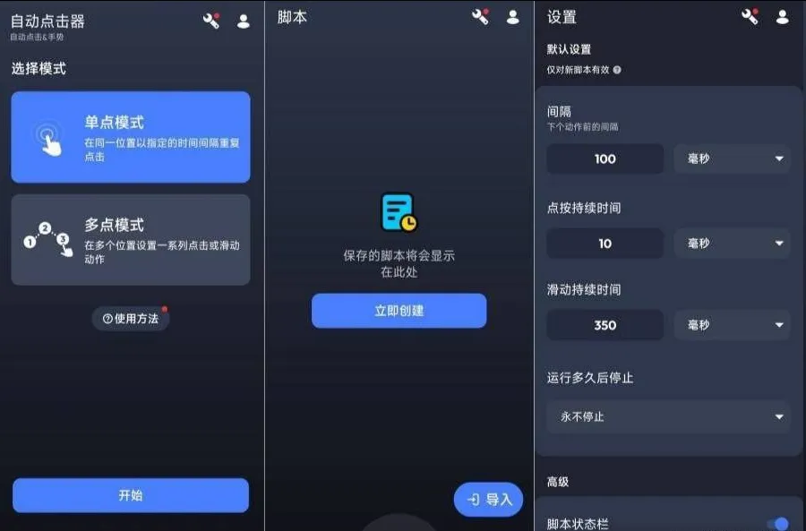 自动点击器是一款帮助用户实现自动化点击操作的应用程序。通过使用浮动控制面板,用户可以轻松启动或结束自动点击功能,并在屏幕上添加所需的点击位置。该应用允许用户保存已设定的点击位置,以便下次继续使用。对于每个点击位置,用户可以通过长按控件来弹出单点配置界面,从而设置延迟时间、触摸时长及重复次数等参数。此外,还提供了全局设置选项,方便用户统一调整点击间隔、触摸时长和重复次数。这款应用非常适合需要长时间进行重复点击操作的任务,如抢票或游戏挂机等。