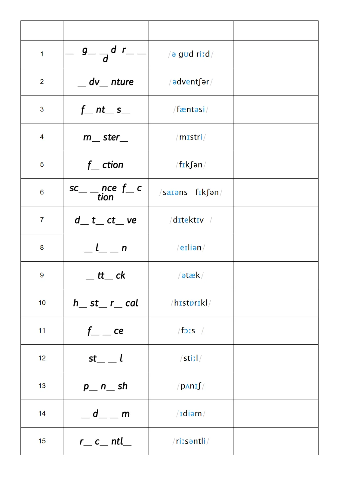 【免费下载】八年级(下)英语 Unit 7 单词挖空 电子版