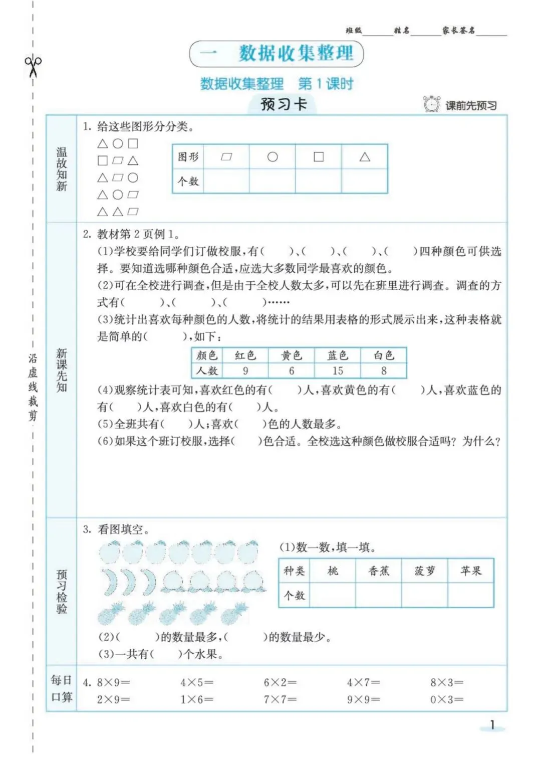 「七彩课堂北师大版数学1~6年级预习卡」