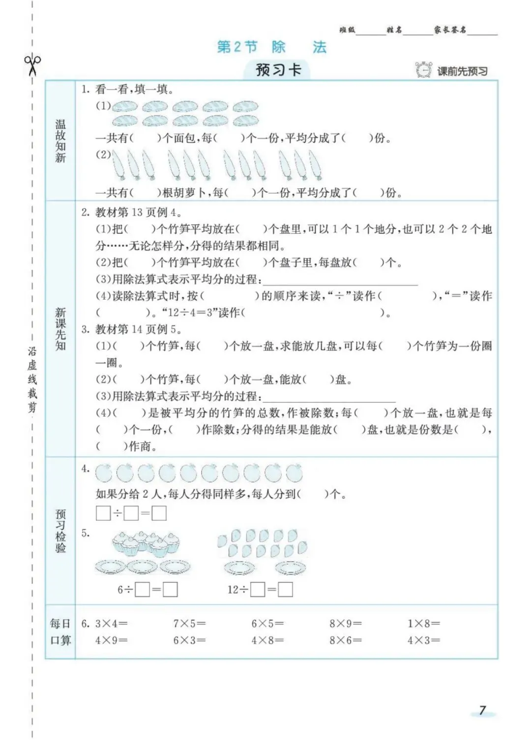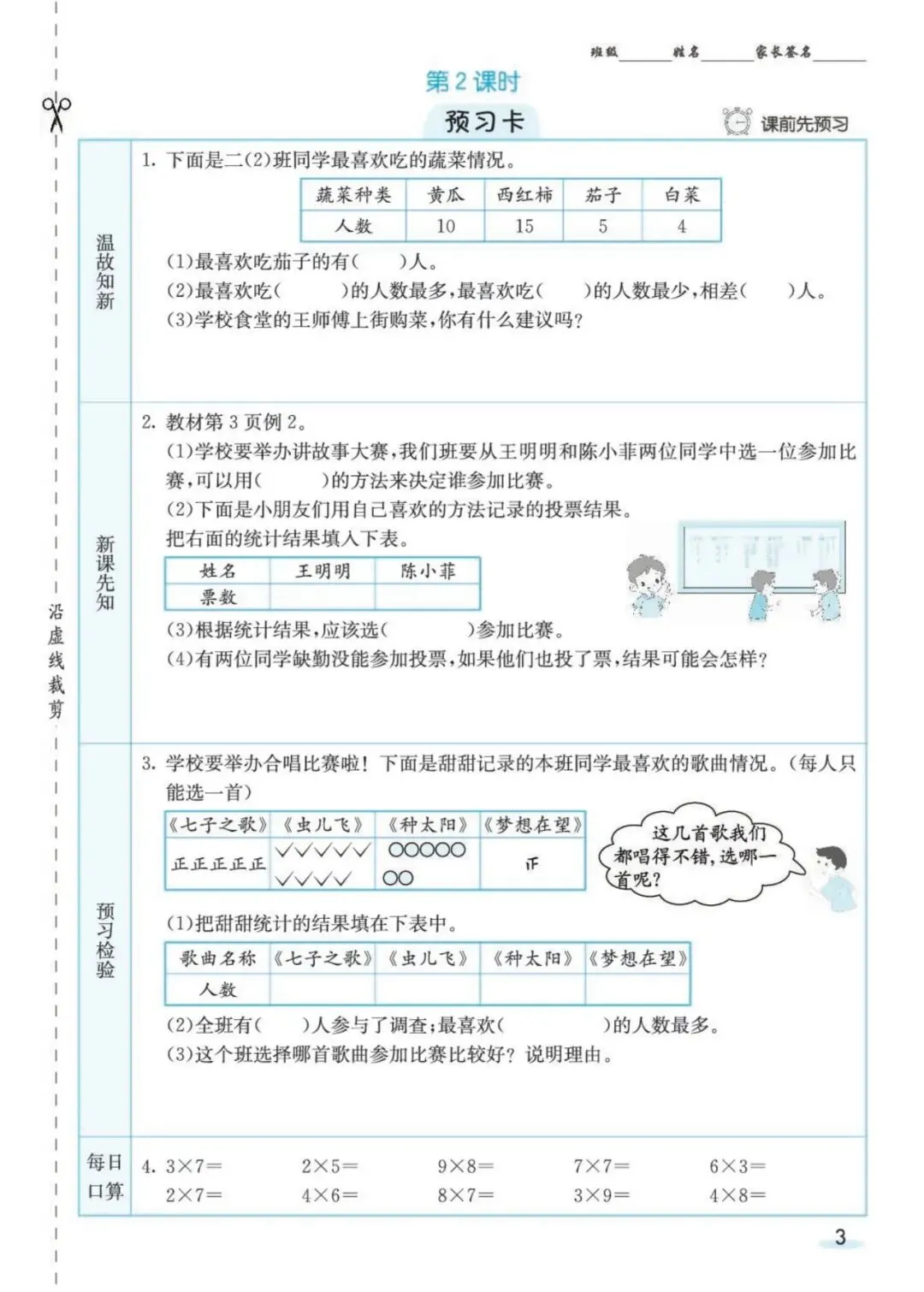 《人教版数学2年级《预习卡+课课练》》需要的家长抓紧打印出来,让孩子练一练吧。
