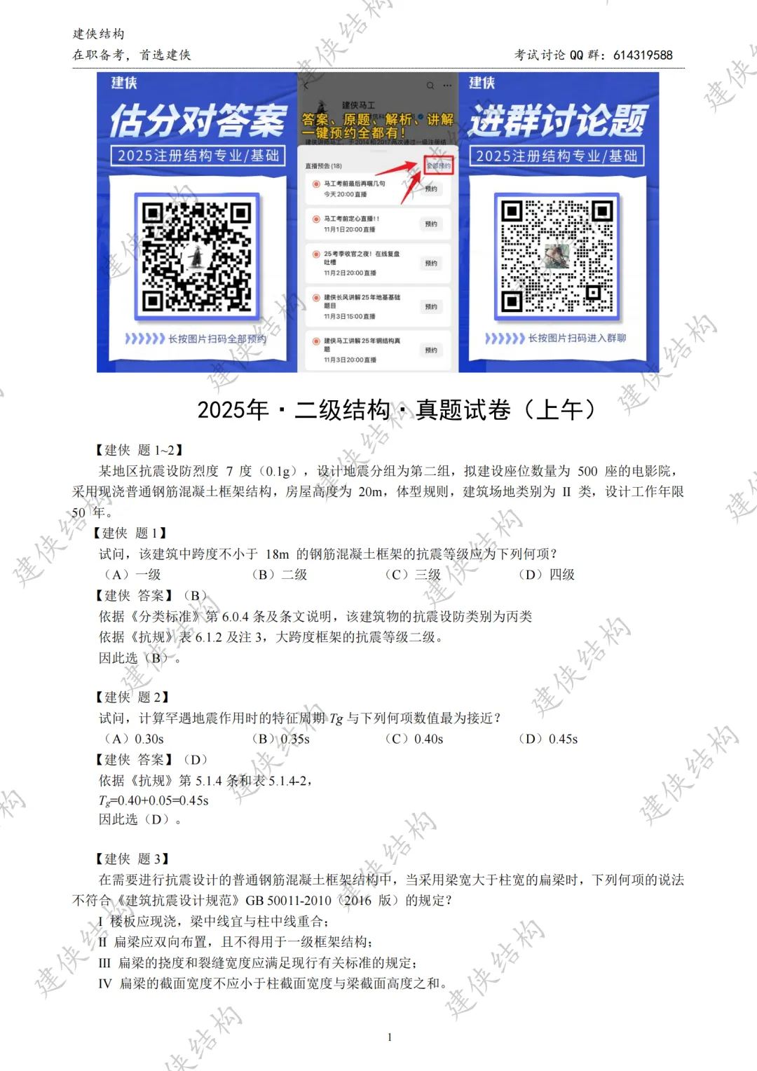 2025一、二级注册结构专业考试原题+解析已出!!!