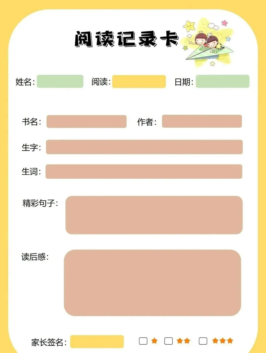 小学摘抄纸打印模板可修改!含线稿!PDF电子版,可打印!