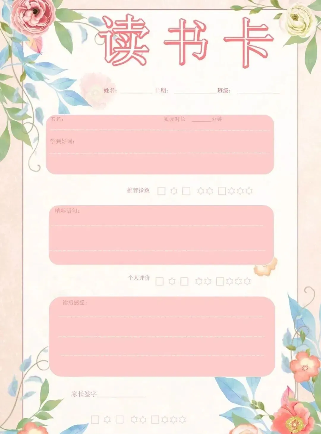 「【41套】阅读记录卡模板合集 (横版+竖版)」