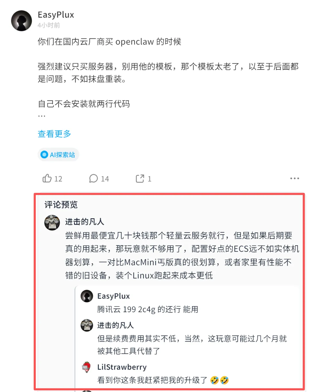装上之后,打开即刻 Web 的关注页或者用户主页,滚动浏览时每条动态下面会自动出现评论预览: