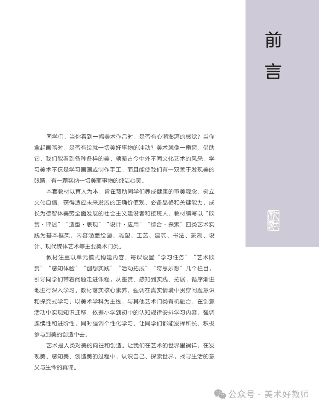 愿教师们在新教材的使用中,既能深耕艺术本体的教学,又能打开教育视野,与学生共同成长,让美育在新时代教育中焕发独特光彩。