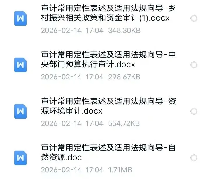 内容包括:固定资产投资审计、国外贷援款项目审计、教科文卫法规向导、企业审计、社会保障资金审计、乡村振兴相关政策和资金审计、中央部门预算执行审计、资源环境审计、自然资源等,适合审计、内控、合规、财务学习参考