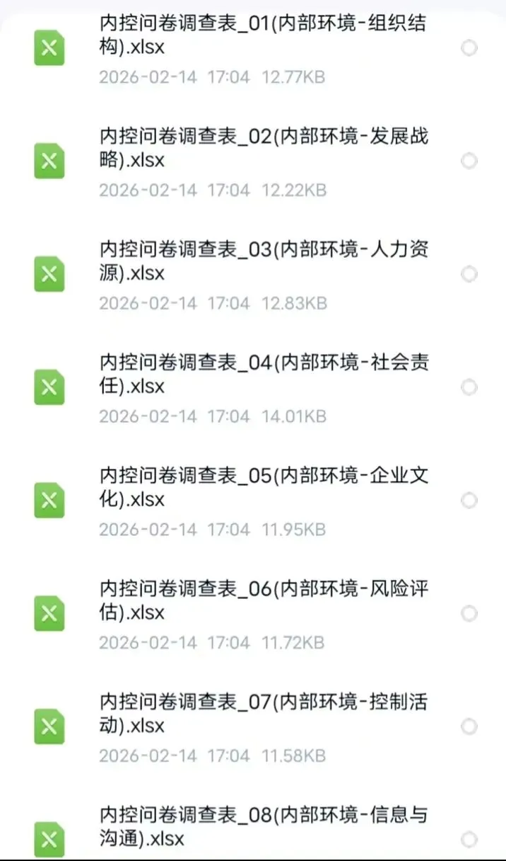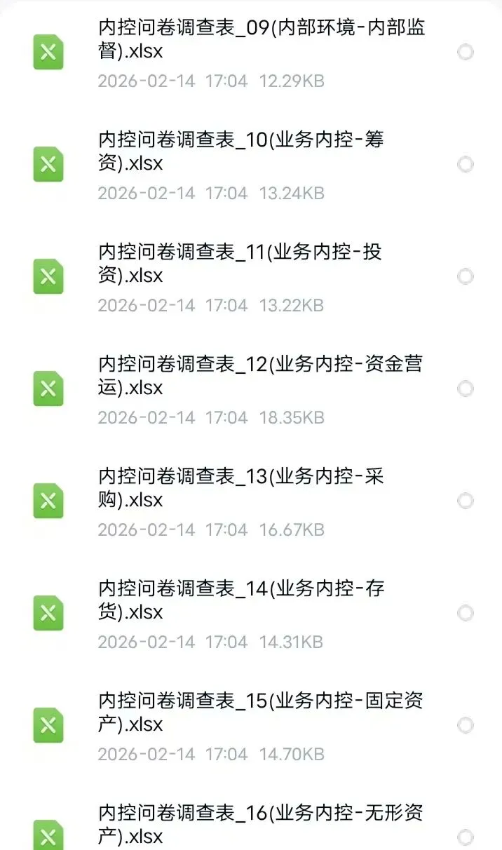 包含内控审计工作底稿(18个内控指引)和内控问卷调查表(31份),内容完整,适合企业内控、审计、合规学习参考。