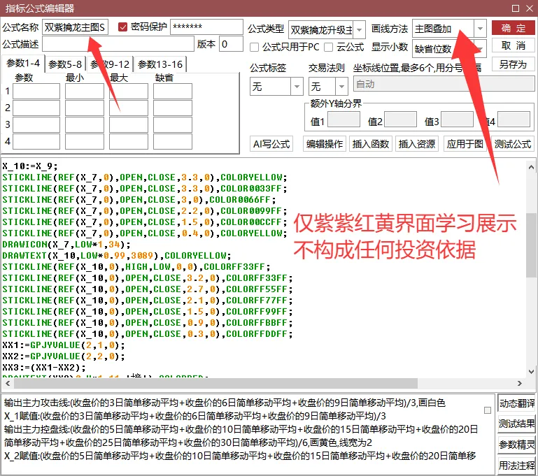 为了让大家可以直接上手测试,我把这套系统的主图基础框架源码分享出来。大家可以直接复制到软件里新建公式。