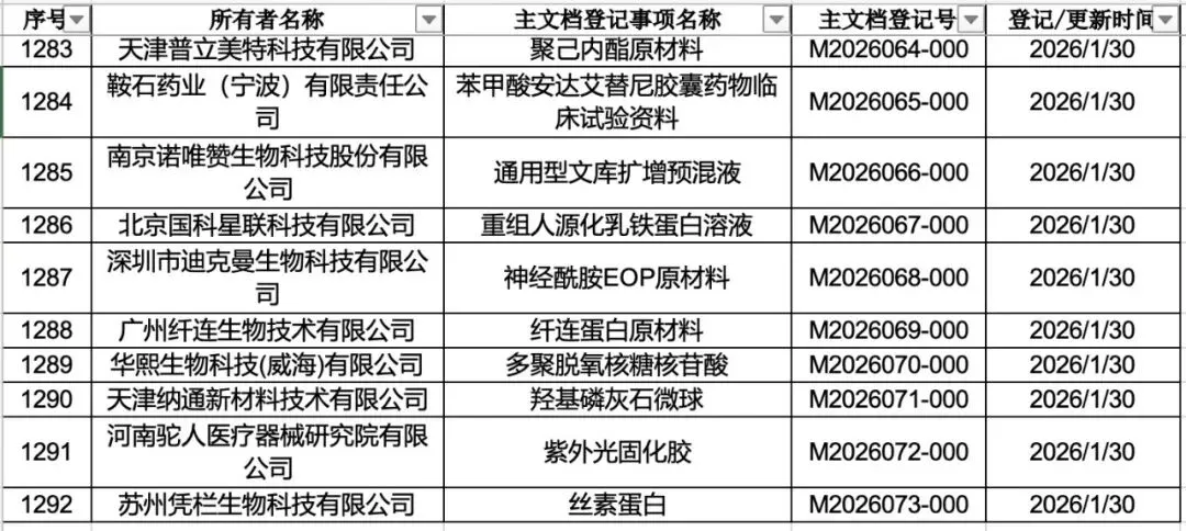 【更新】医疗器械主文档登记清单(20260130)