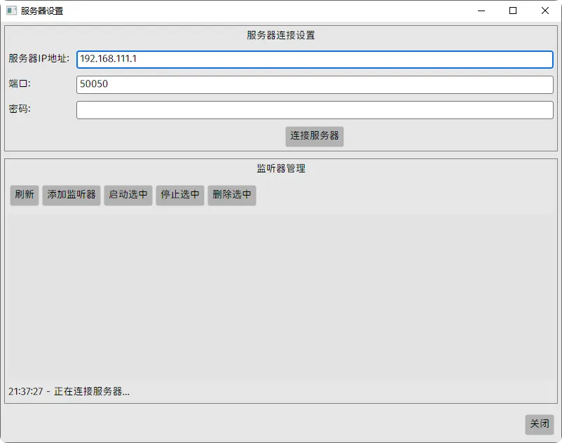 2、多监听器管理:服务端可同时运行多个不同类型的监听器,支持动态启停、添加或删除,并将配置持久化到 INI 文件。
