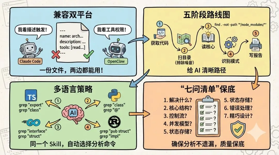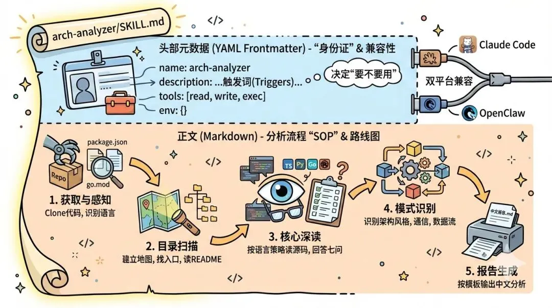 下面是完整的arch-analyzer/SKILL.md,我会在后文解释。
