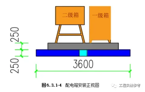 根据防护棚尺寸砌筑一个长方形条形基础,基础四周根据实际情况预留进出线槽;根据配电箱支腿尺寸砌筑长方形四面封闭条形基础;配电箱条形基础内待电缆敷设完毕后填防护沙