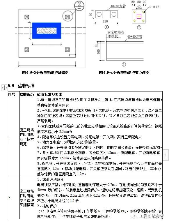 8)为了保证现场用电规范,无用电安全事故发生,项目临时用电统一由项目部进行现场整体平面布置和用电规划,各参建单位须按照总承包平面管理要求执行,必须采取挂设方式的电缆须根据项目安全管理部要求进行规范挂设,挂设采用绝缘钩,经安全部验收合格后方可投入使用。