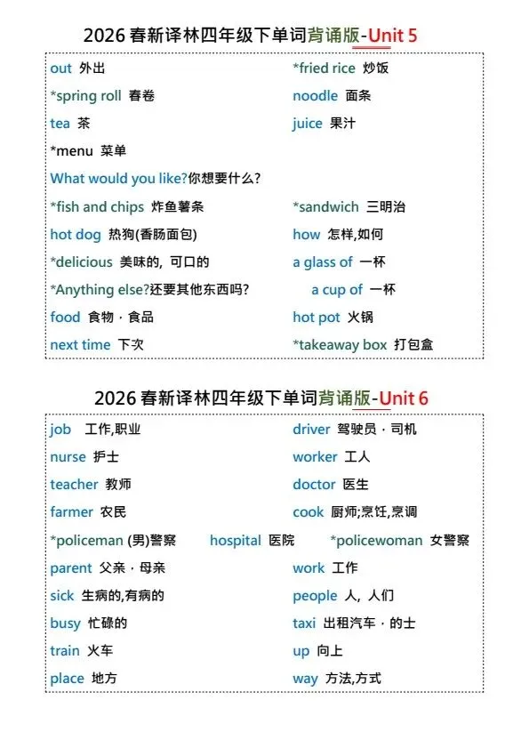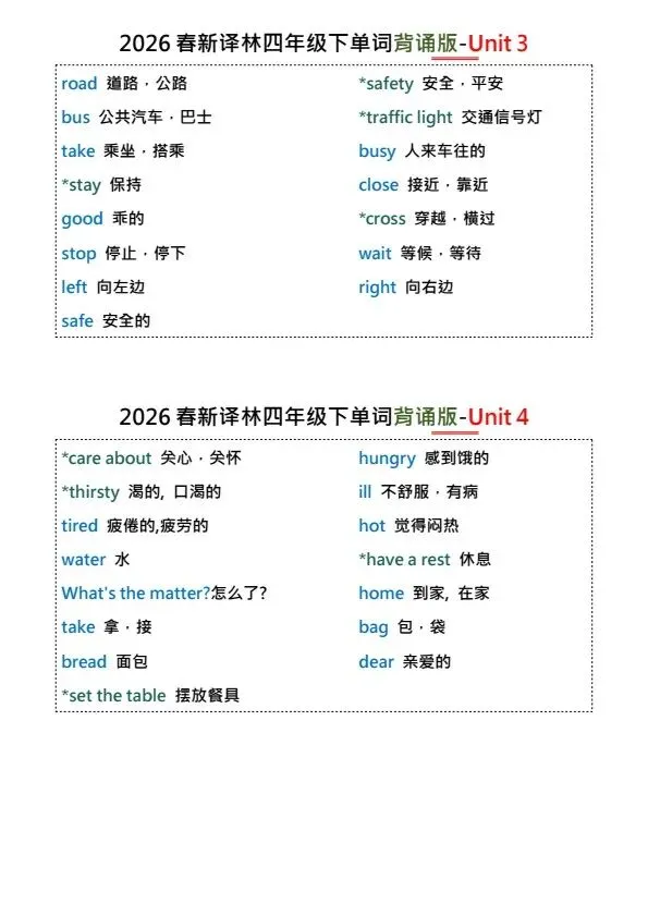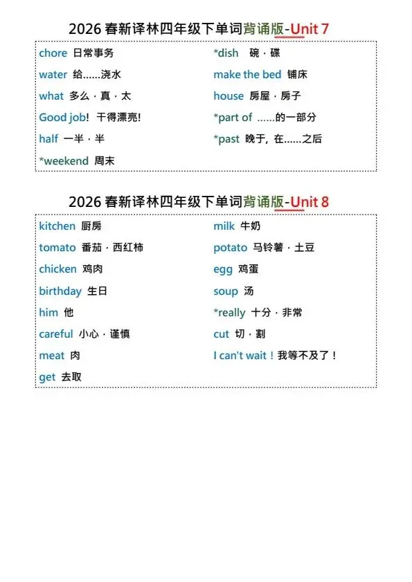 今日分享2026新译林版四年级下册单词背诵+默写(完整电子版可打印)!高清电子版可直接打印,排版规整适配练习,不用费心整理,孩子每日一练夯实基础,家长辅导省心!