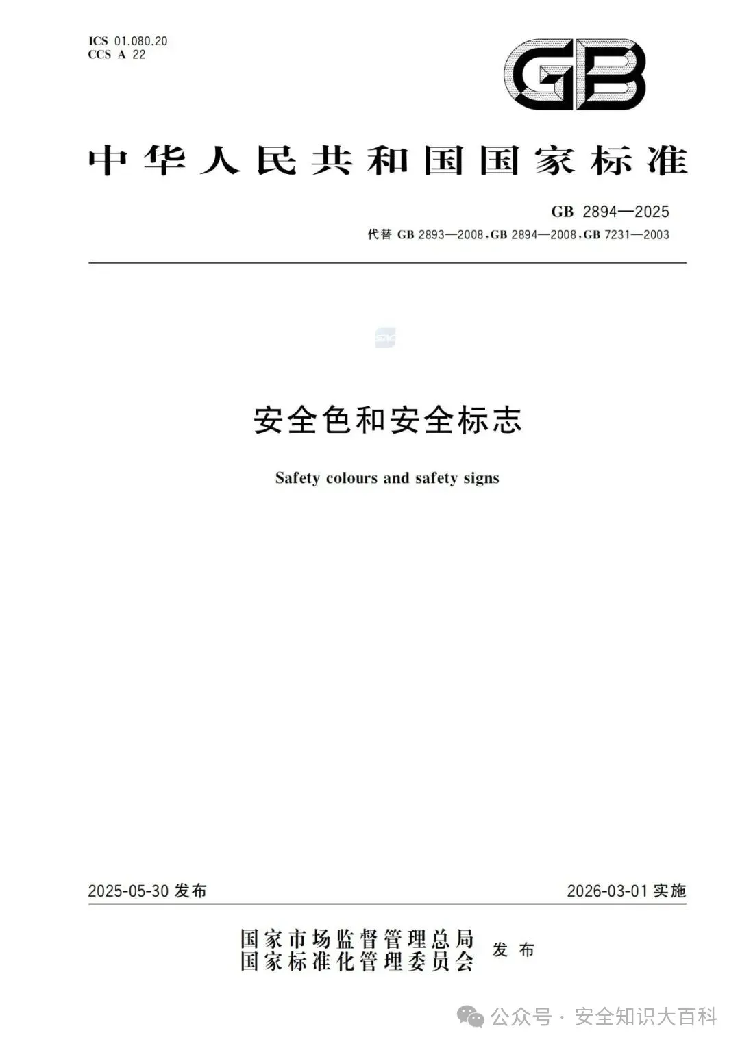 强制性国家标准GB 2894-2025《安全色和安全标志》发布,该标准将于2026年3月1日正式实施。这一新标准将全面替代已经实施多年的GB 2893-2008《安全色》、GB 2894-2008《安全标志及其使用导则》和GB 7231-2003《工业管道的基本识别色、识别符号和安全标识》三项标准,实现了对安全标志相关规范的全面整合与升级。其中很多安全标志样式发生了改动,请及时辨识, 替换成为最新版本,做好过渡期管理,否则可能会被处罚!2026年3月1日起,所有安全标志应符合GB 2894-2025《安全色和安全标志》规定。