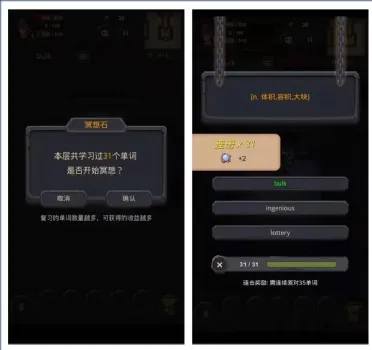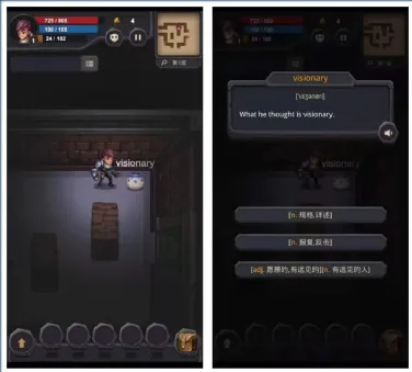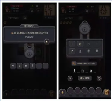 它将多种英语单词学习方式与游戏冒险巧妙结合,例如游戏过程中进入下一间密室有个被封印的门,我们需要根据中文意思完成对应的英语单词拼写才可以打开被封印的门进入到下一间密室。