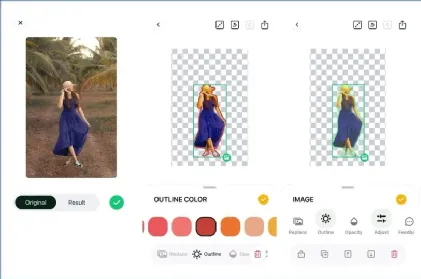 它支持对抠图的主体部分描边,包括:描边宽度、描边平滑程度、描边颜色、描边模糊程度,还支持调整主体部分的透明度,亮度、对比度、饱和度、色温、色调等。