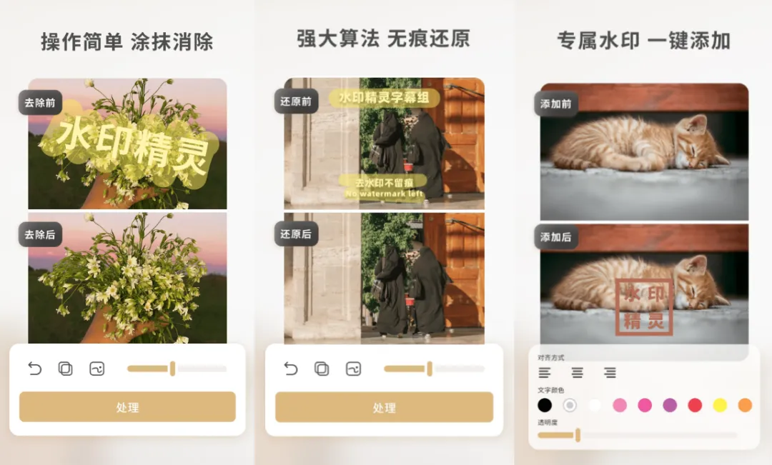 还可以用做追星壁纸去水印、旅行照去除路人等,此外它的加水印功能有超多样式,使用的模板还会自动保留方便下次使用!