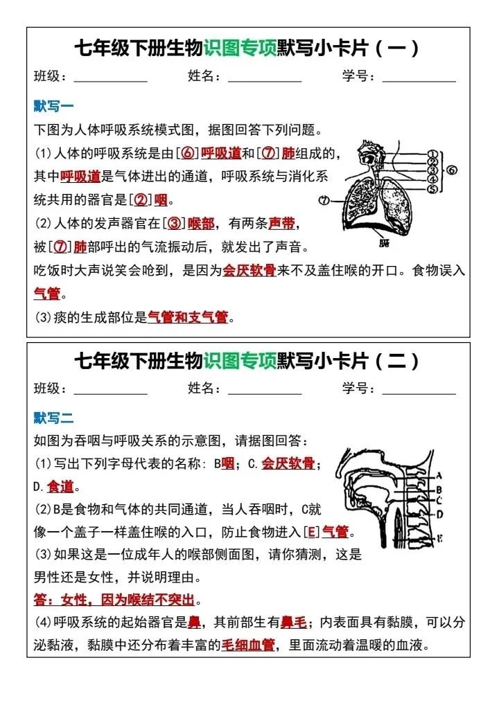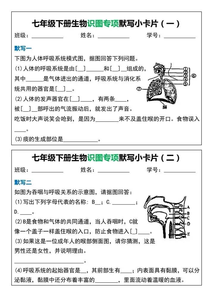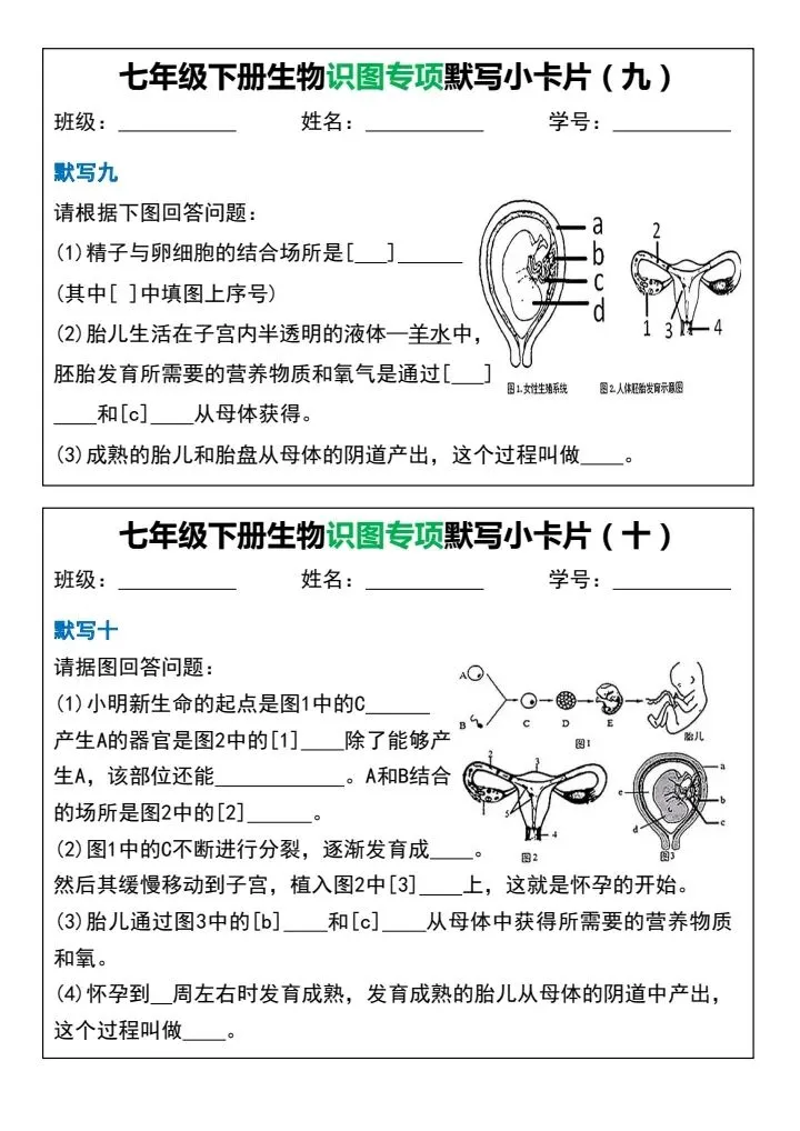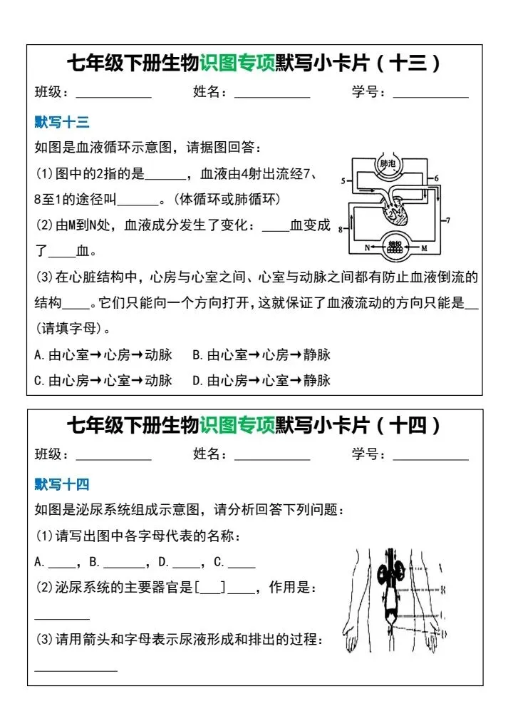 寒假蓄力,进阶不停歇。今日分享新七年级下册生物识图专项默写小纸条(完整电子版可打印)!高清可打印,每日轻量练习,拒绝无效刷题,用系统化资料筑牢学科基础,让假期成为提升的黄金期,开学轻松领跑。