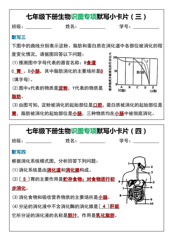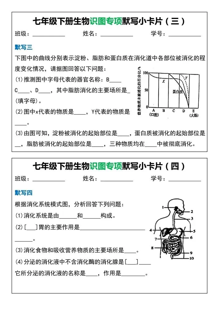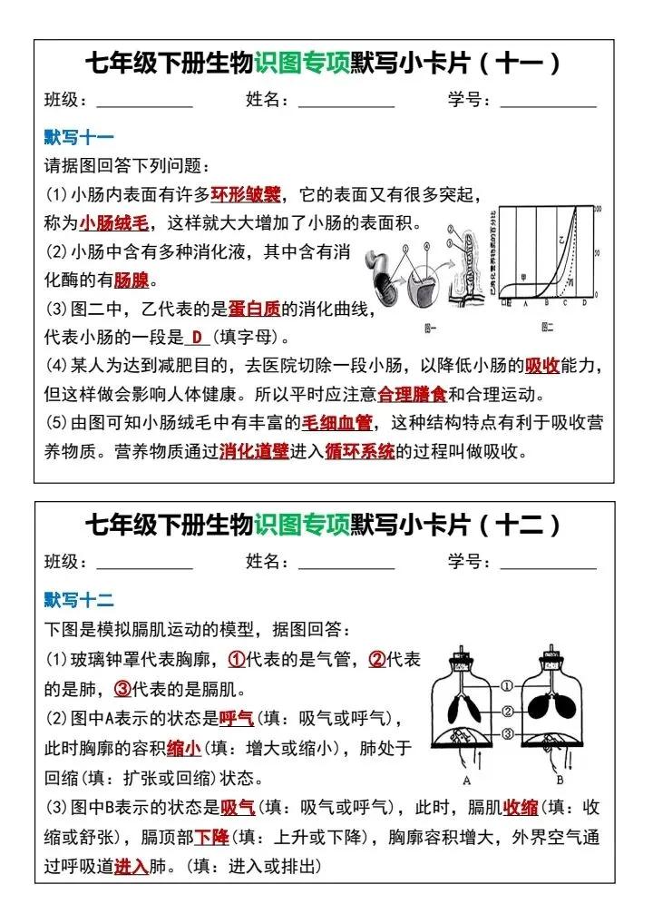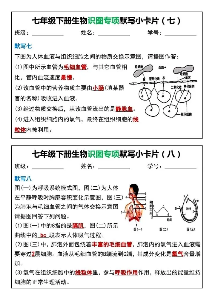 新七年级下册生物识图专项默写小纸条(完整电子版可打印)