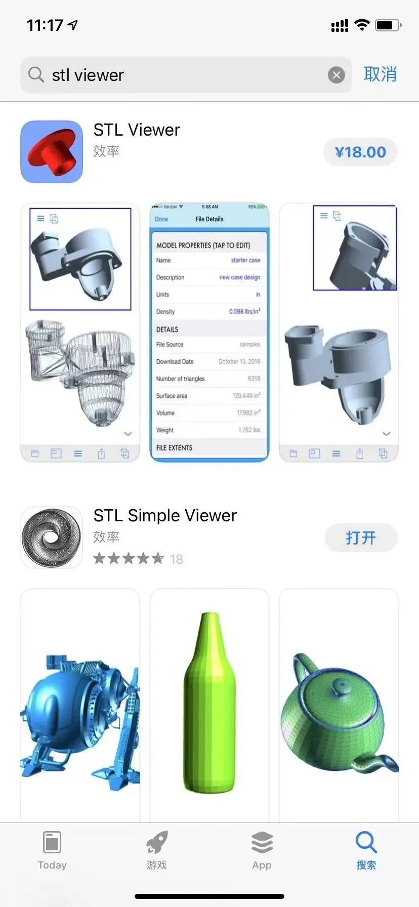 其实,在找到这款app之前我们还发现了其他2款有同样功能的stl查看器,一款是付费的STL Viewer 和另一款免费的STL Simple Viewer。