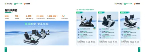 智能模拟器系列: 集团推出的模拟器矩阵包含“旗舰版M9”、“精锐版”和“运动版”。其中,旗舰版M9采用星际驾舱美学设计,配备31.5寸曲面屏及高精建模考场。通过电控转向、座椅震感及头枕音响,实现了对真车操作手感的1:1还原 。