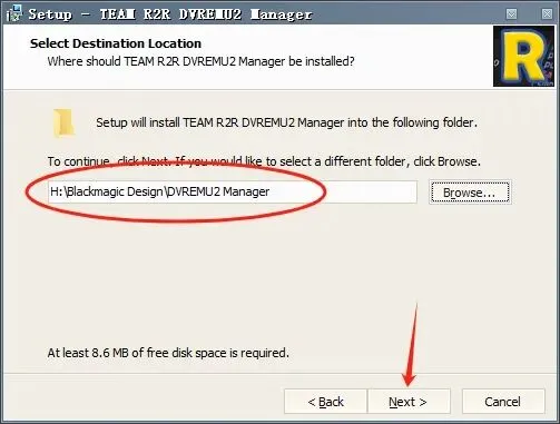 7、修改路径地址中的第一个字符C可更改安装位置(如:把C改为H,软件将安装到H盘),点击【Next】。
