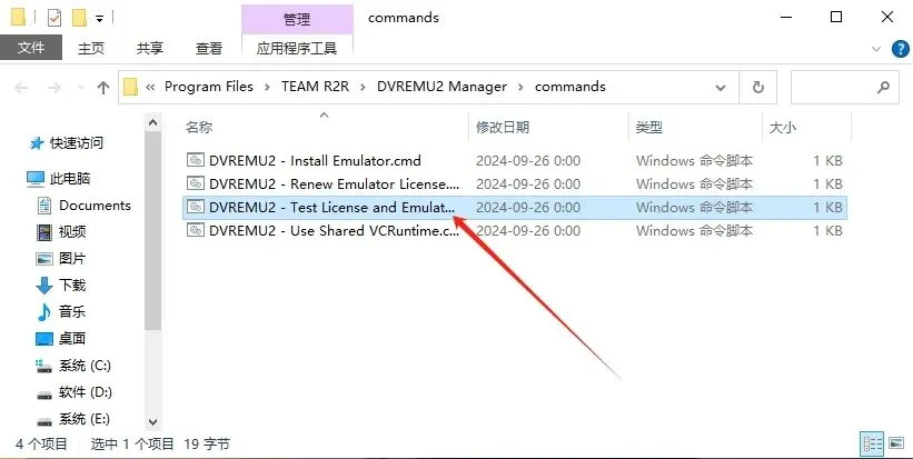 23、双击运行【DVREMU2 – Test License and Emulator.cmd】程序。