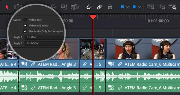 可根据场景中正在说话的人来自动切换多机位角度。自动的分析视频中的音频和说话人的口型,然后自动选择片段角度!