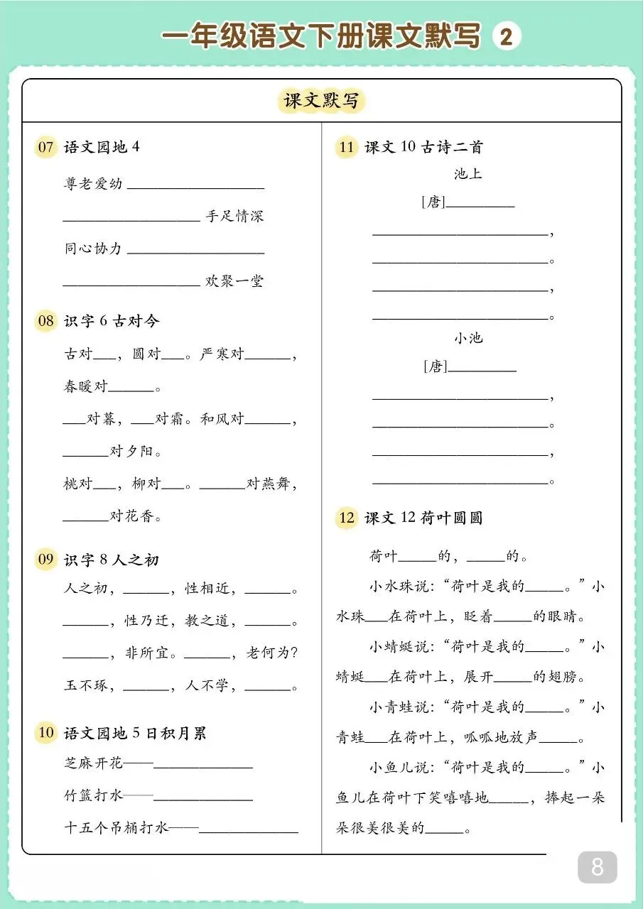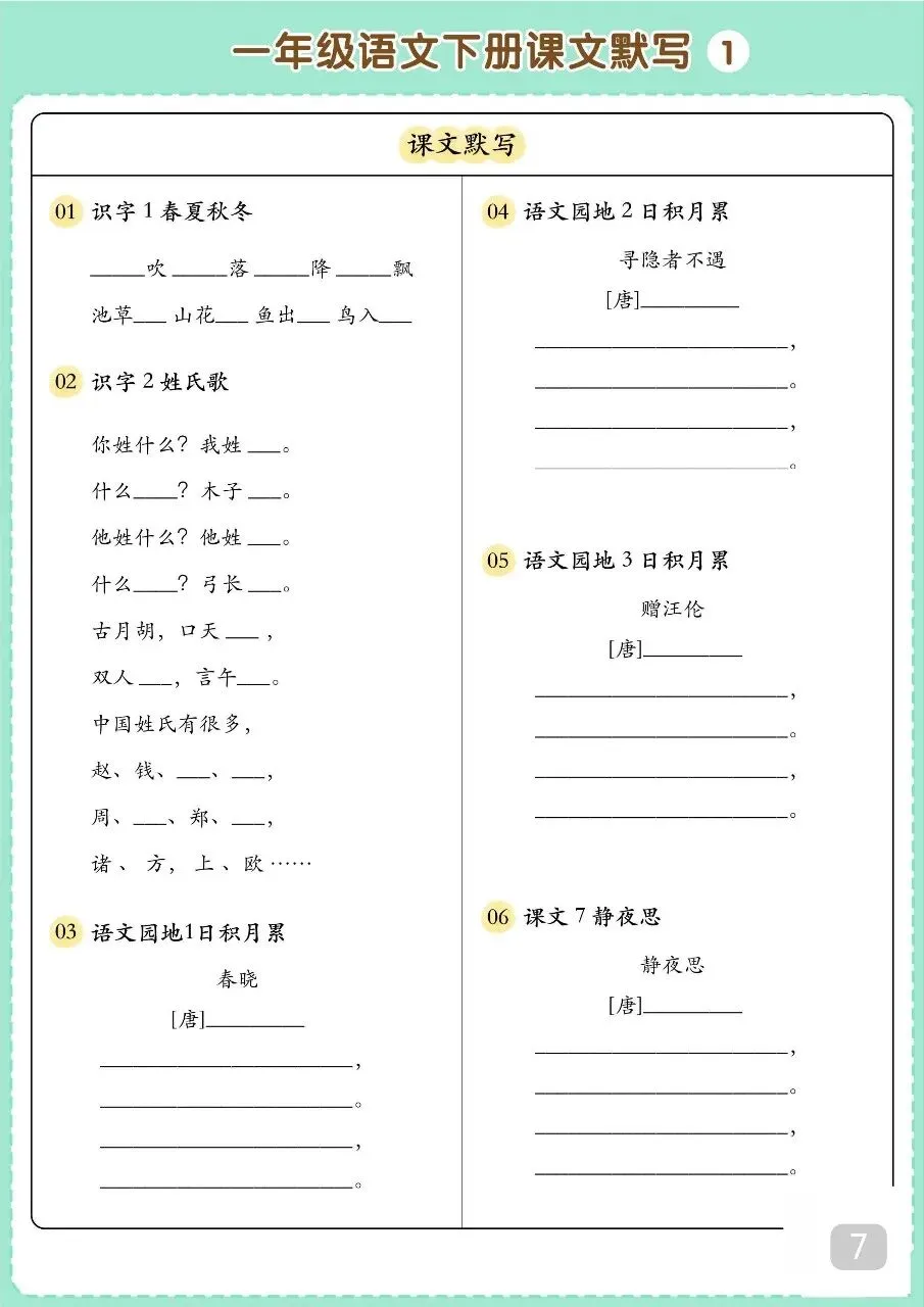 一年级(下)语文 寒假预习资料.pdf 篇幅有限,无法全部展示。 请按照文末方式领取,无门槛永久免费,欢迎转发,帮助更多有需要的人~ 文末有完整电子版领取方式! 领取完整电子版: ①:点一点右下角的“👍”和“❤️” ②:在公众号对话框中回复“资料1110”