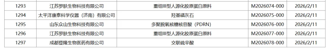 山东众山生物科技有限公司申报的「多聚脱氧核糖核苷酸(PDRN)」完成主文档登记,登记编号为:M2026076-000;
