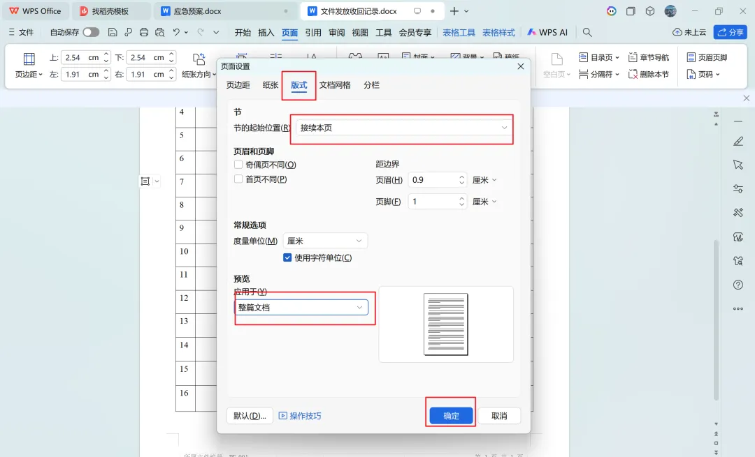 解决WPS中删除空白页后格式全乱了问题 今天写文档时遇到删除空白页面后,文档前面一节的页眉页脚不见了的问题,经过多方查找,终于找到解决办法,如下: 1.先点击页面,找到页边距,点击自定义页边距 2.点击版式,节的起始位置选择接续本节,应用于选择整篇文档,点击确定。 此时,再删除空白页,文档的格式就不会乱了。