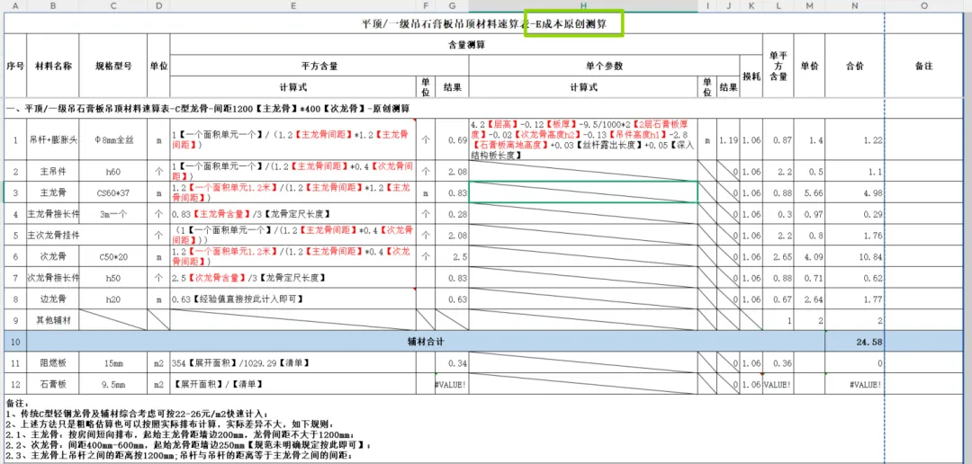 🎁 权益二:成本定额库『原创』测算表