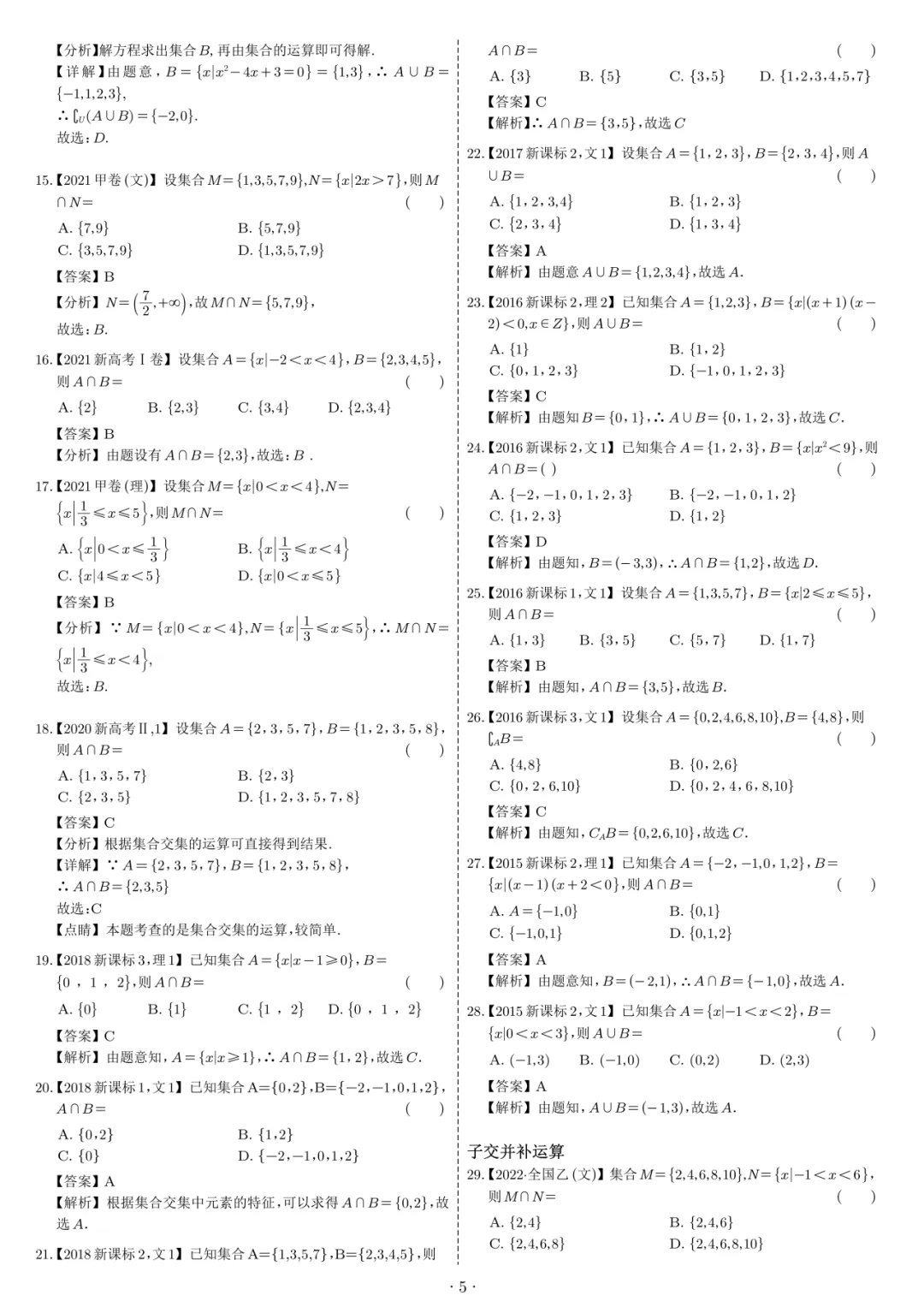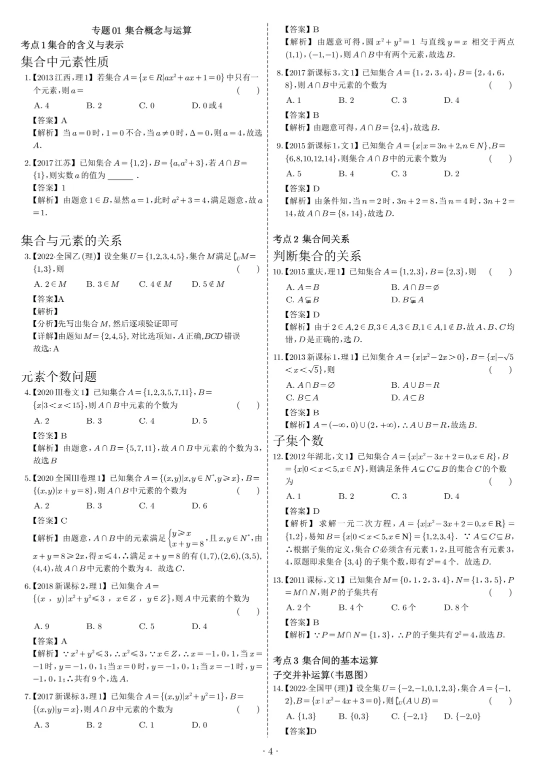 高考数学1000道选填母题
