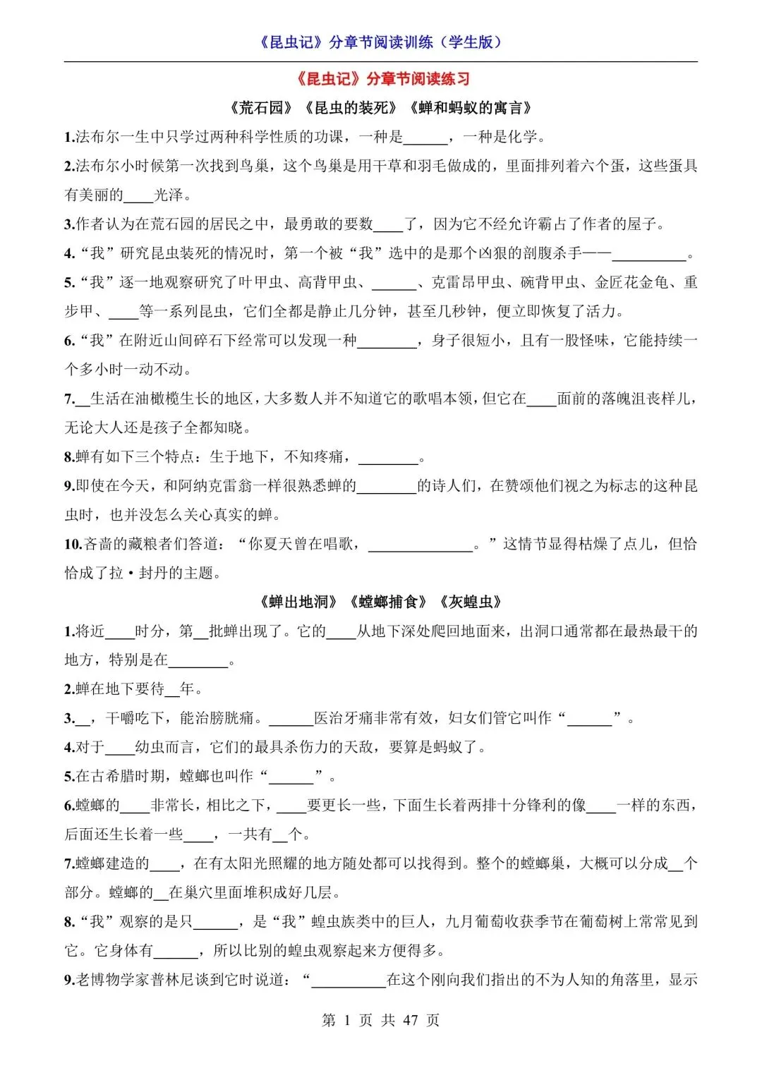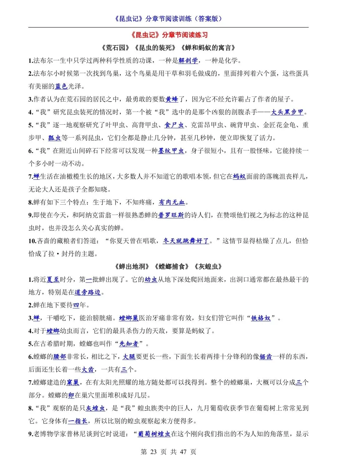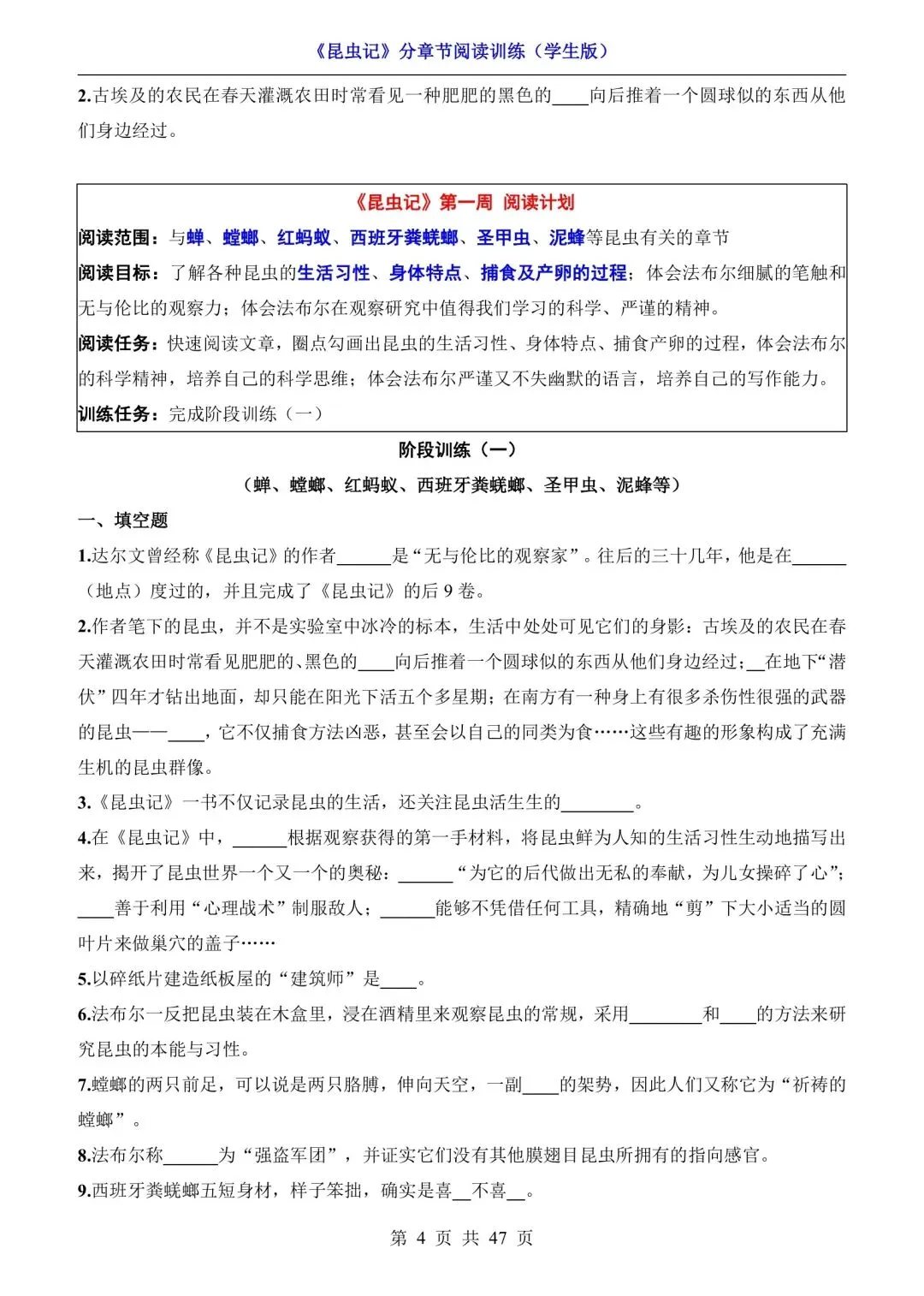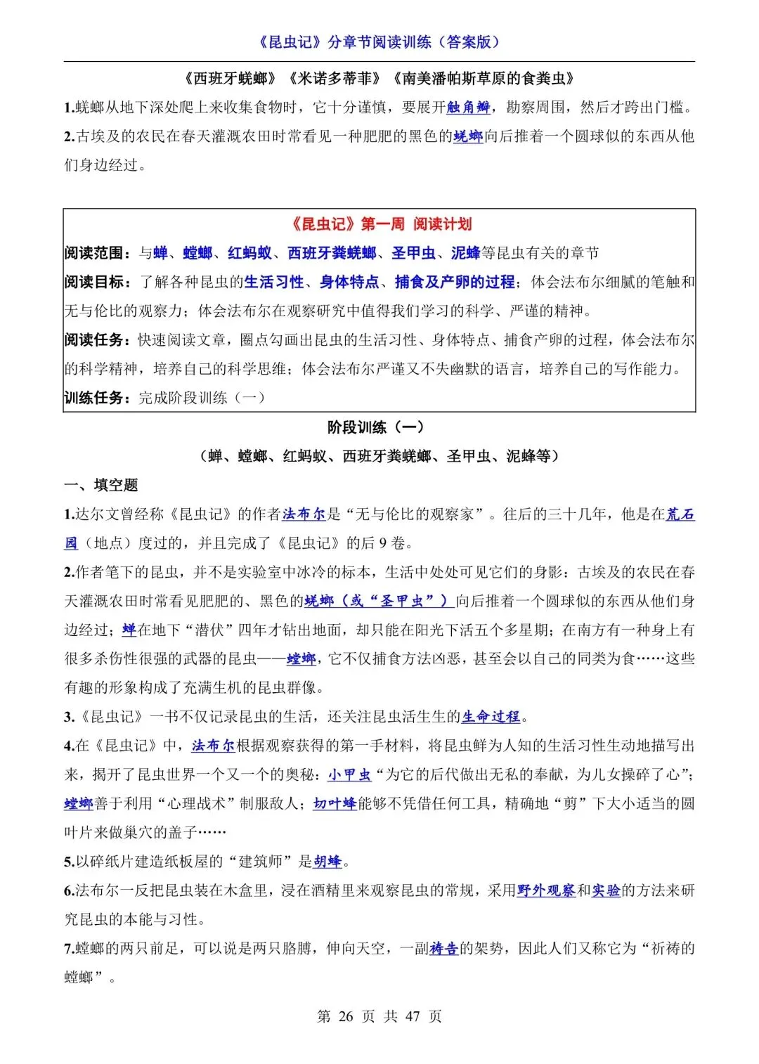 八年级语文必读《昆虫记》分章节阅读训练(可下载打印) 资源下载见图片底部 资源介绍 电子版PDF文档 网盘下载链接详见页面底部 ▼内容预览▼ 版面所限,此处仅展示部分内容 完整版电子版👇 获取完整电子版方式 👇 点击下方卡片关注 进入“瑶瑶妈妈爱学习”的后台 发送消息 资料下载 获取打印电子版方式 重要说明 版权声明: 本公众号分享的资源,均为免费公益性分享,仅供学习和教学使用,请勿用于商业用途。所有文件版权归原作者所有,如有侵权可以联系本人删除。本公众号尊重版权,有任何版权问题,可以直接在公众号留言,我看到后会回复。