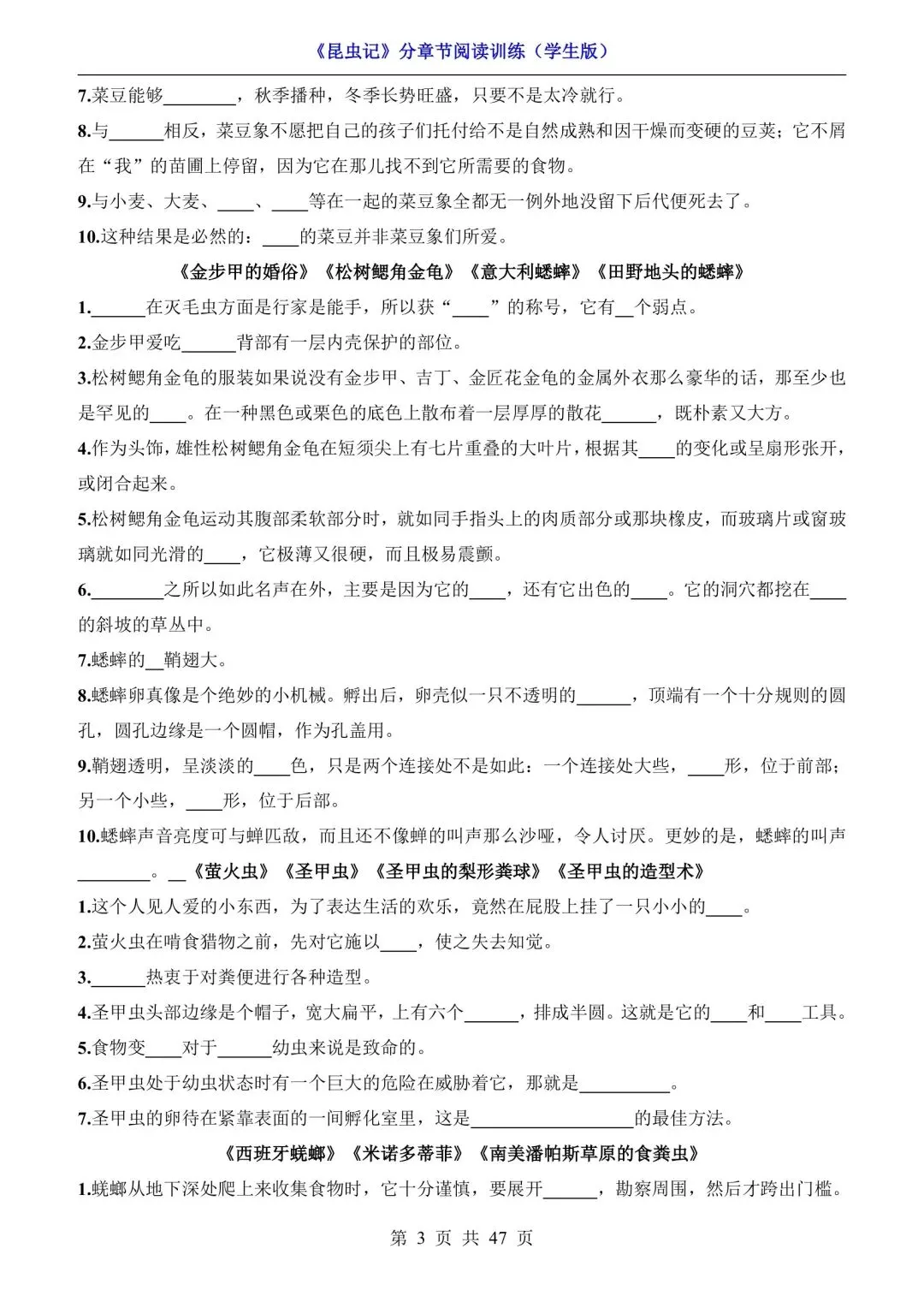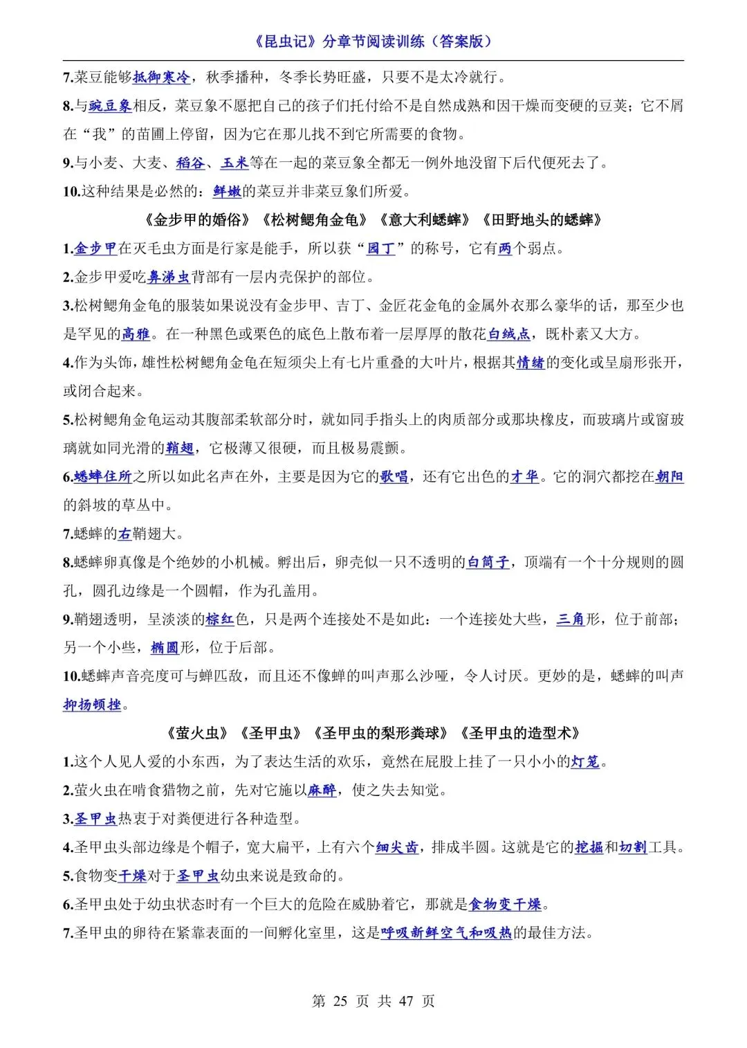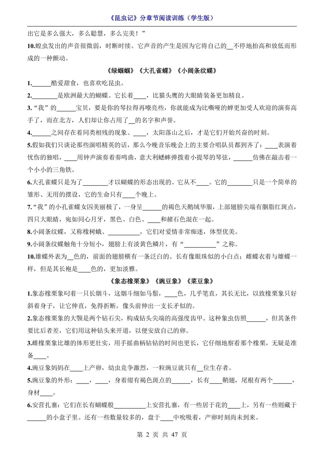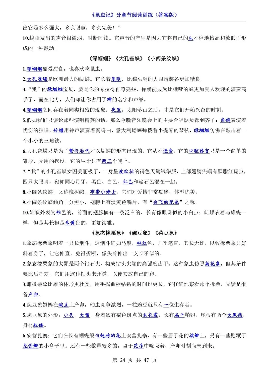八年级语文必读《昆虫记》分章节阅读训练(可下载打印) 资源下载见图片底部 资源介绍 电子版PDF文档 网盘下载链接详见页面底部 ▼内容预览▼ 版面所限,此处仅展示部分内容 完整版电子版👇 获取完整电子版方式 👇 点击下方卡片关注 进入“瑶瑶妈妈爱学习”的后台 发送消息 资料下载 获取打印电子版方式 重要说明 版权声明: 本公众号分享的资源,均为免费公益性分享,仅供学习和教学使用,请勿用于商业用途。所有文件版权归原作者所有,如有侵权可以联系本人删除。本公众号尊重版权,有任何版权问题,可以直接在公众号留言,我看到后会回复。