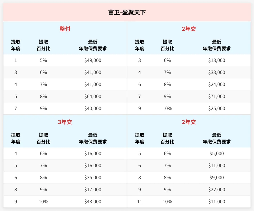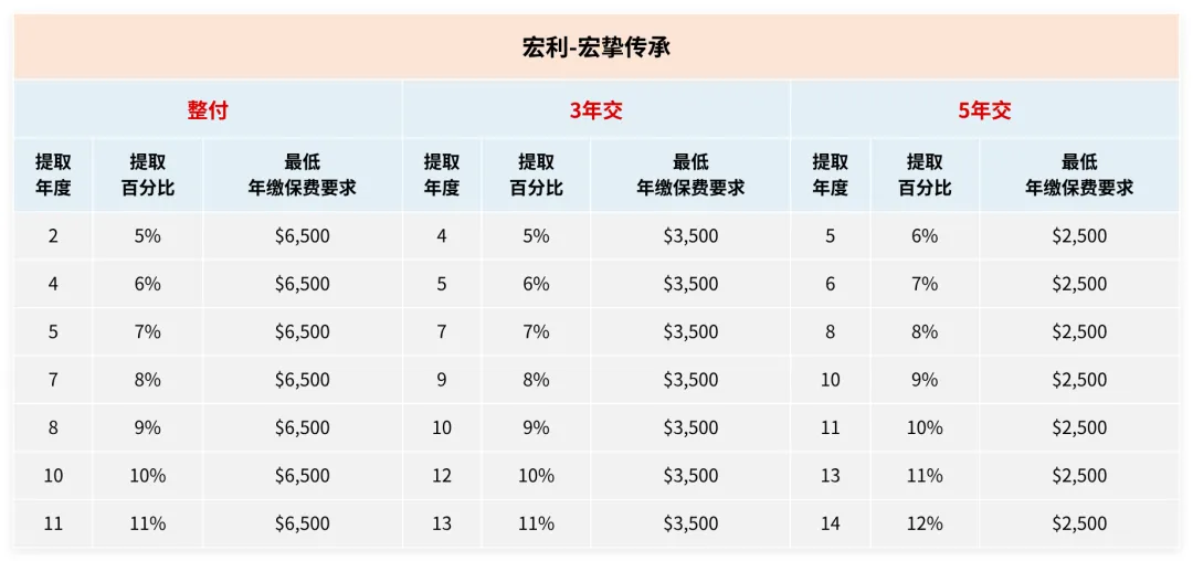 我们可以根据自己的缴费年期和提取计划随心选择,不过需要注意最低保费要求。