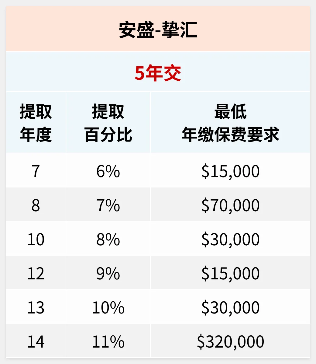第6年开始领6%,最低年缴保费$5,000 -