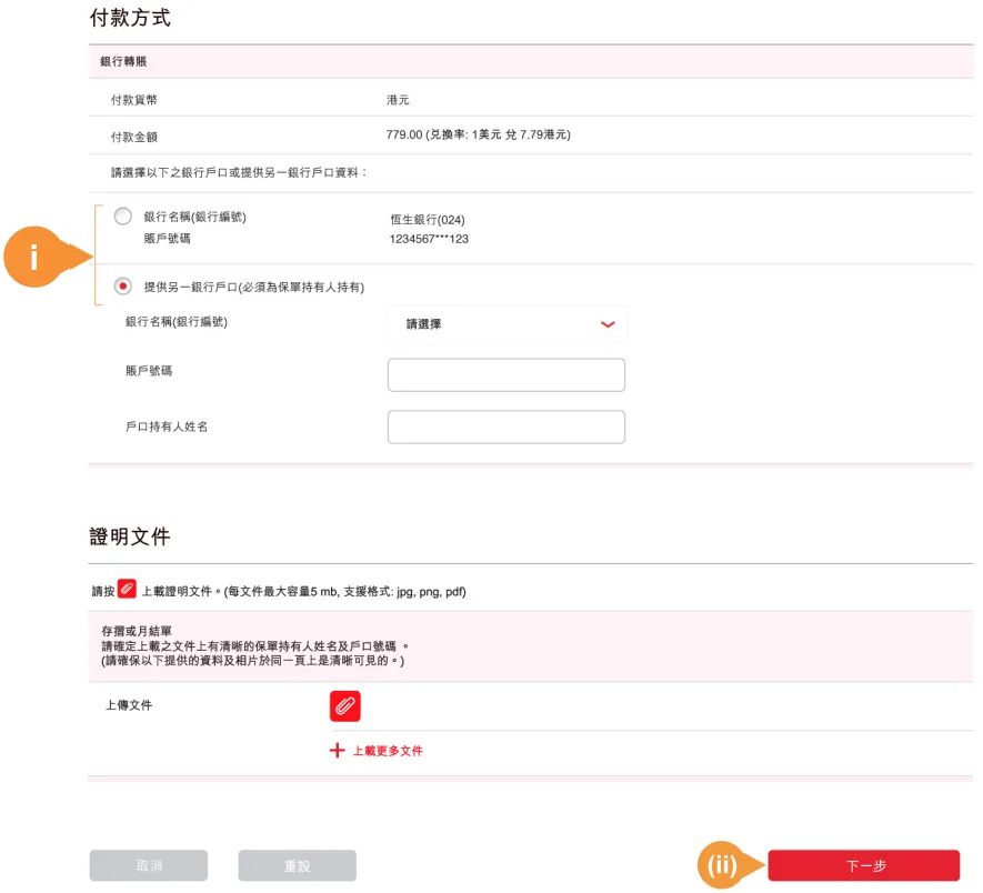 注意:银行转账每日最高限额港元300,000(或等值),超过限额将以支票支付。