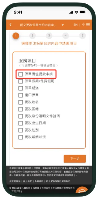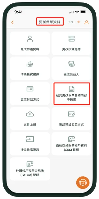 富卫APP提领步骤:更新保单资料→提交更改保单合约内容申请书。